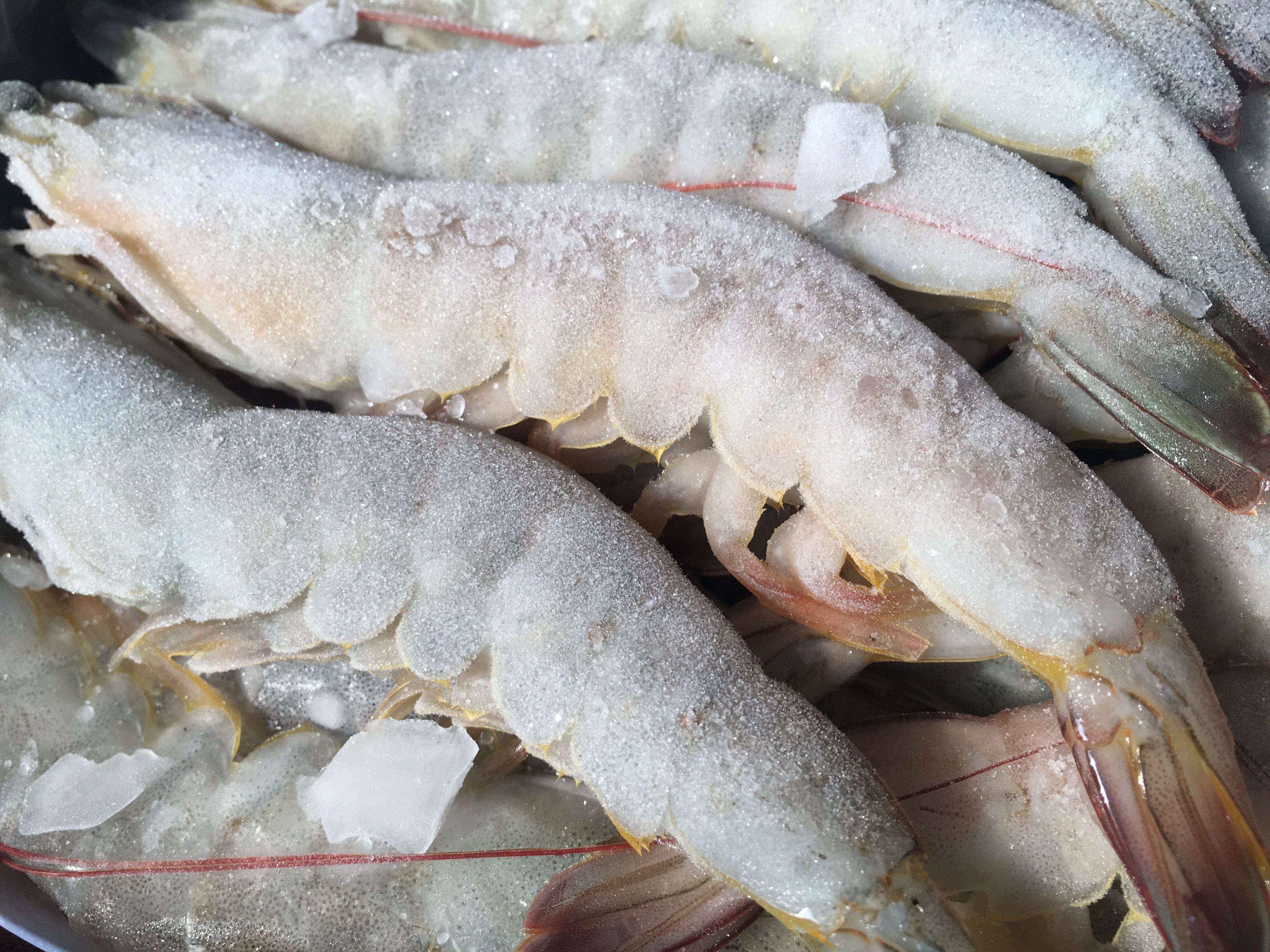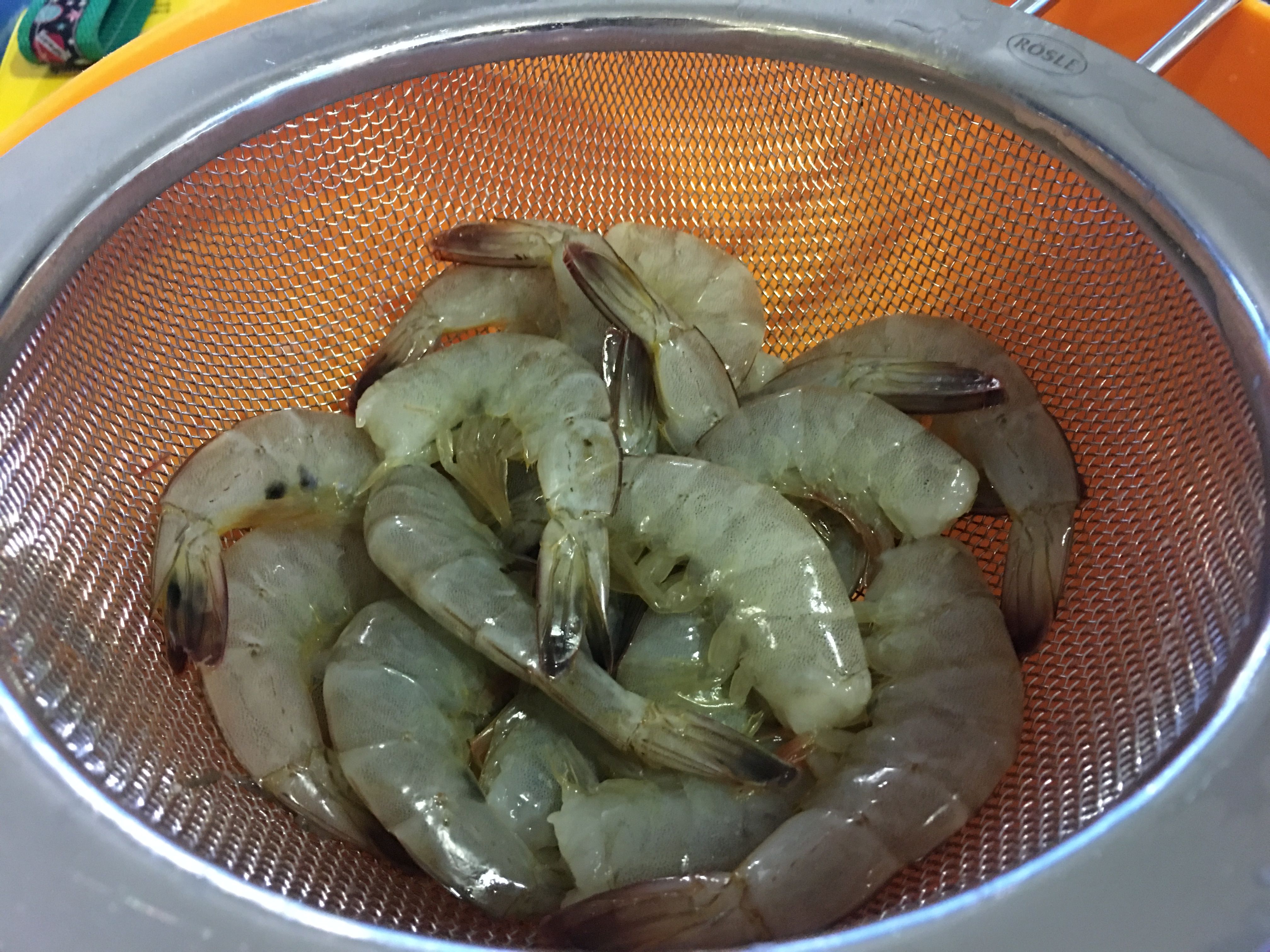 Kids deliverd the ice cold and still frozen shrimps fresh from Vietnam. Now I have to "re-animate" that frozen beauties from Vietnam with some not to hot water and gave them some time get warm.