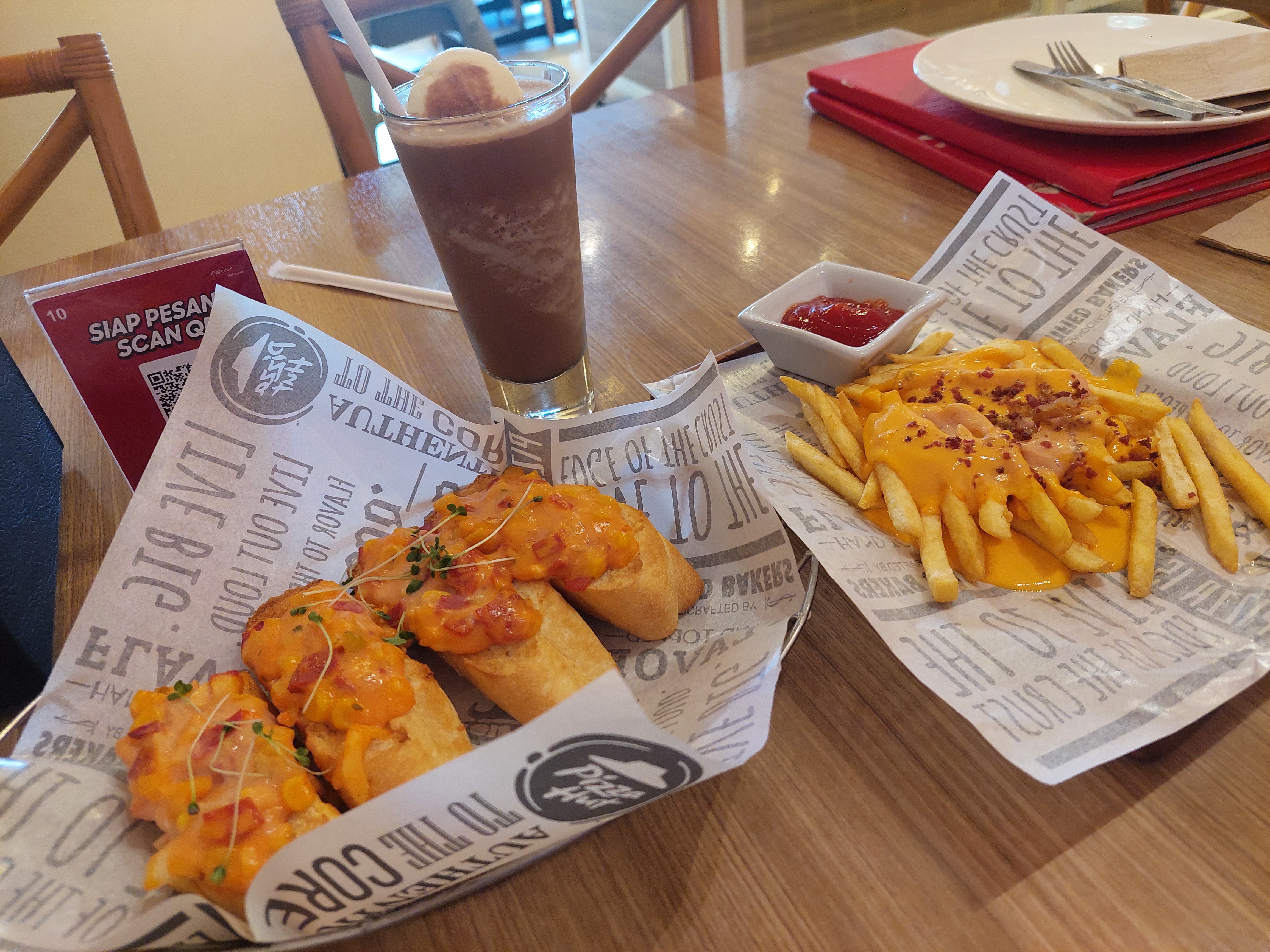 Tasty Snack Time - Bruchetta, Cheesy Fries and Mocha Float