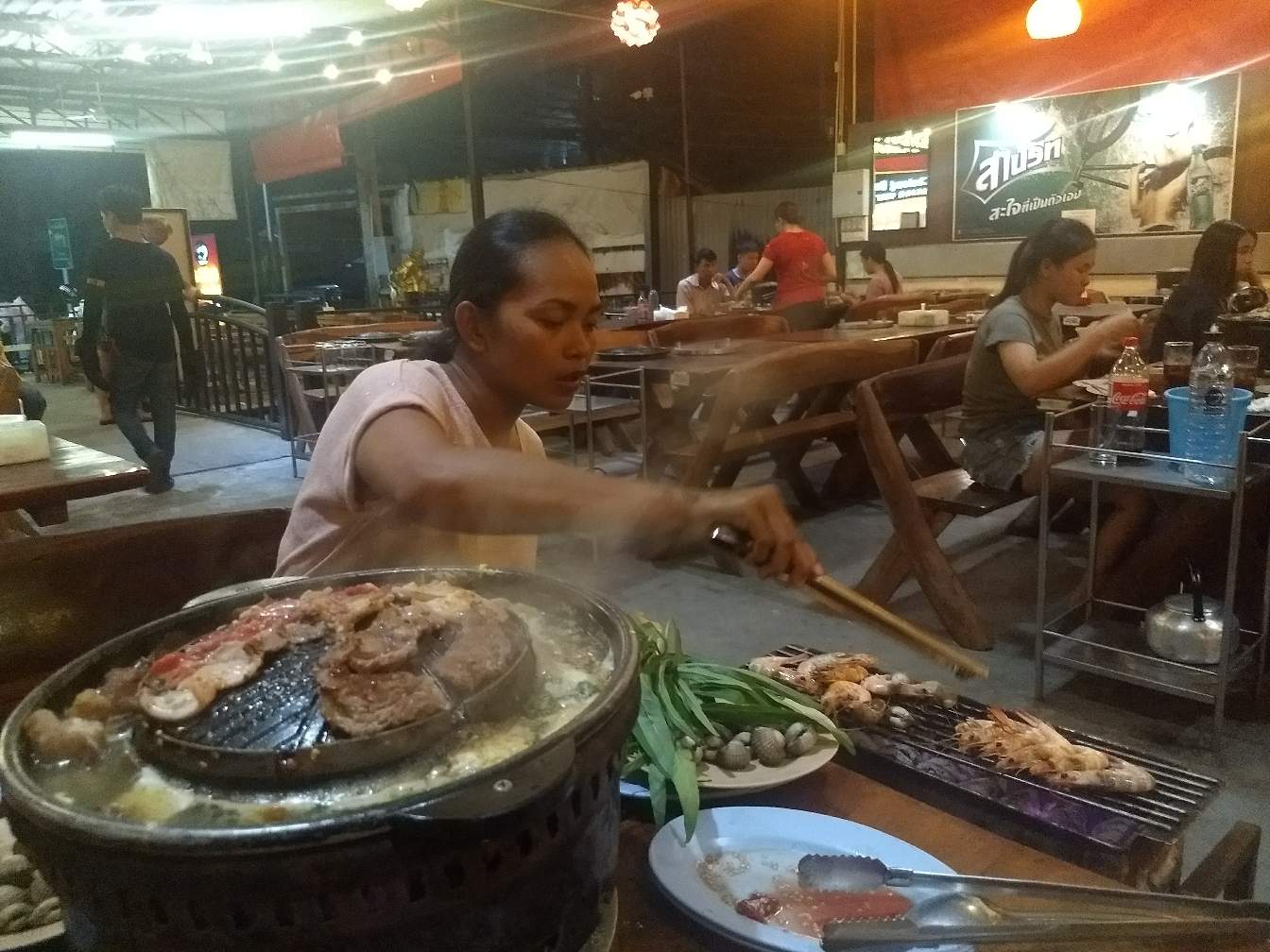 Heute habe ich mich bedienen lassen, von Beginn, also der Auswahl des Grillgutes an und nun werde ich mit kaufertigen Genüssen gefüttert. Und wenn ich mich so umsehe, Zeit habe ich ja, sehe ich an Tischen, die mit Asiaten besetzt sind, dasselbe.