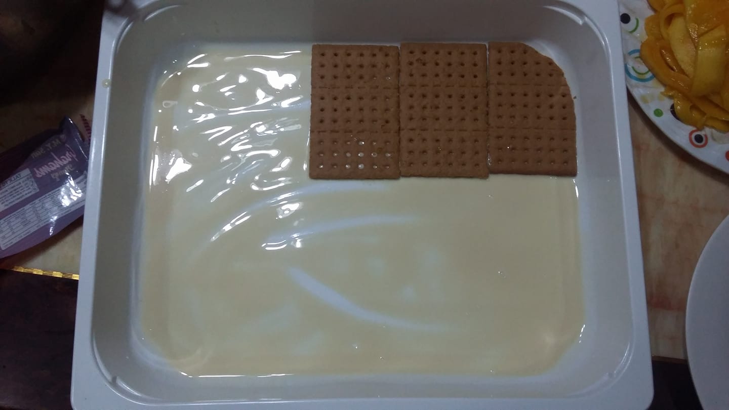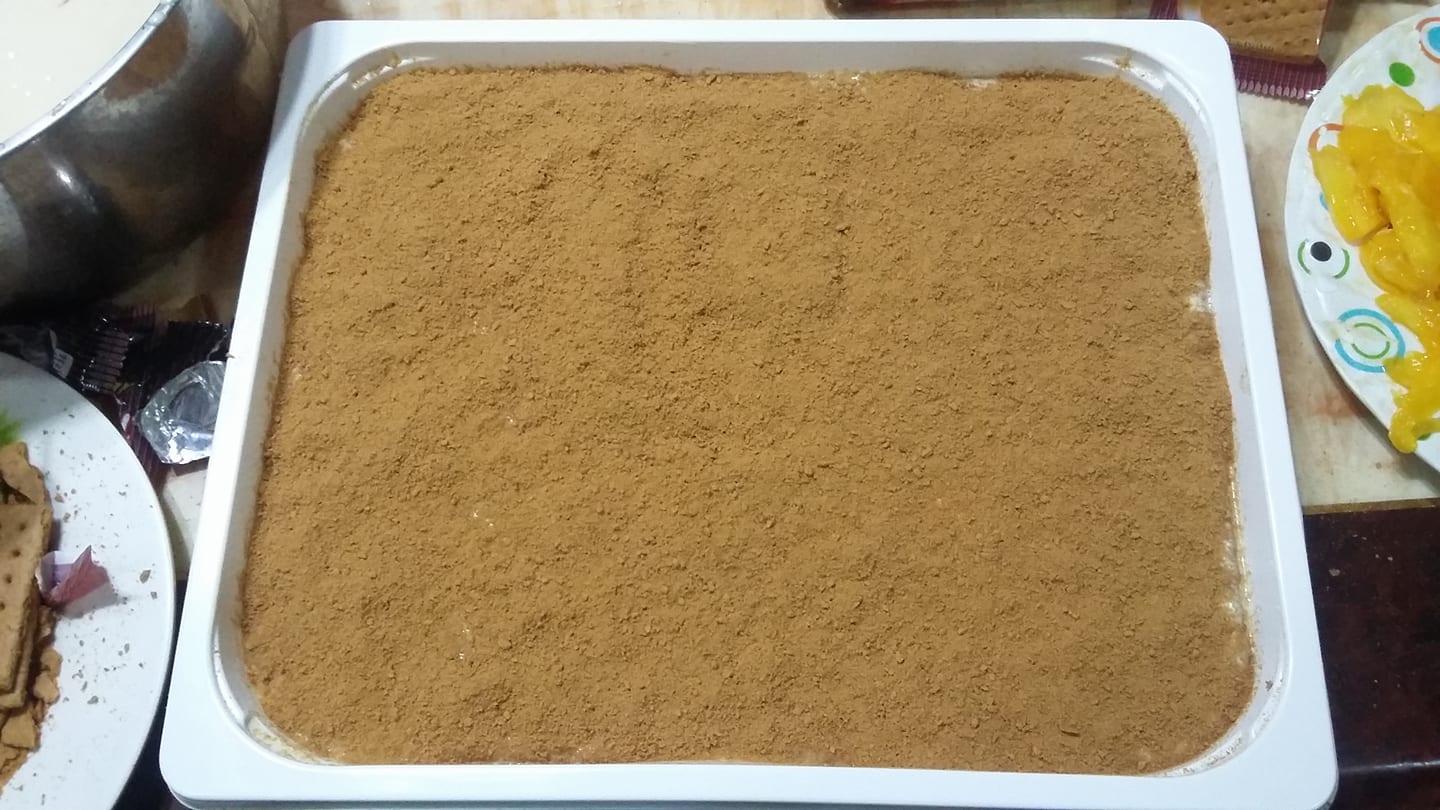 - Now place a layer of Graham Crackers. With your estimations you can make the layer fit to your dish.
