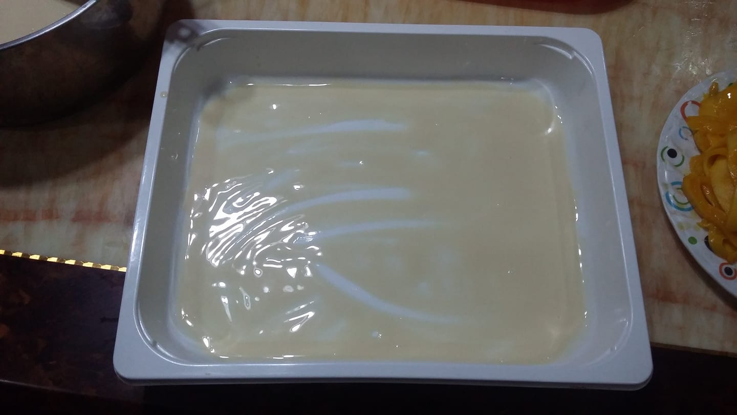 - Using a ladle, add some milk mixtures into the bottom of your dish with just a little amount.