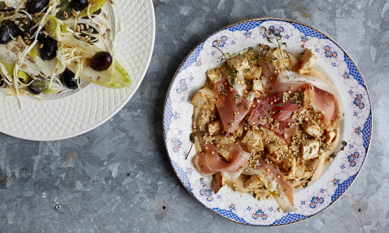 Irecall cooking my youngest daughter celeriac mash for the first time: it was met with a deep reluctance. When I suggested it was potato, she tentatively gave it a try. I remember the instant look of suspicion that washed over her little face.That said, I’d have probably been equally suspicious as a child – celeriac wasn’t something my mum cooked for us, and I only discovered the root’s potential when I became a chef. In the winter of 2004, I was cooking a big supper withHugh Fearnley-Whittingstall, in an old barn in Dorset. We had some big, fresh, locally grown celeriac for the menu. We made it into a silky, ivory puree, which we served with fried wild sea bass and slow-cooked pork belly. The puree bound those two Distinct ingredients that work together beautifully. I loved the idea of something from the sea and something from the land being joined so perfectly by something from below the ground. And, since that night, my view of this gnarly underrated vegetable has changed completely.Celeriac – a swollen root and member of the celery family – has a flavour somewhere between sweet earth and hazelnuts; it has a toothsome crunch when raw, but softens beautifully too. For me it is one of the most versatile vegetables there are.I use it throughout the autumn when it first appears and well into the late spring. Young, firm celeriac – full of character and fantastic eaten raw – I peel and cut into little batons; excellent crudites for dipping. I also like it coarsely grated, delicately ribboned, or matchsticked and dressed with a creamy mayonnaise, spiked with mustard in a classic remoulade – perfect with grilled meats or lentils.Later in the season, when the weather turns cold, I roast chunks of it – just like you would potatoes – with garlic, dried chilli and lots of thyme until it is caramelised on the outside and soft in the middle. Celeriac dauphinoise is another stalwart: layers of thinly sliced celeriac baked with double cream and a little garlic, anchovies, rosemary and grated parmesan. Wonderful with roast lamb.I’m still as fond of the creamy texture of it pureed or blitzed into a soup as I was back in 2004. So, today’s recipes include both. To keep things fresh, and to showcase the root’s remarkable versatility, there’s a clean crisp salad too – a surprisingly subtle blend of sweet and bitter.