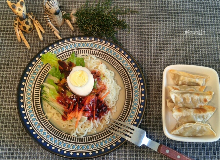 @ 재료 : 팔도 비빔면 1개, 오이, 당근, 상추 조금, 참기름