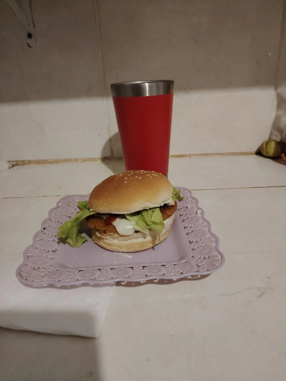 Good morning everyone, the truth is, friends, that since it’s the weekend—Saturday—it’s the perfect day for a chicken burger for lunch, which, of course, is store-bought. We cook it on the griddle, first on one side and then on the other, and once it’s cooked, we take the bun, split it in half, add condiments, lettuce, egg, and tomato, then put the other half of the bun on top, and just like that, we have our burger ready to enjoy.