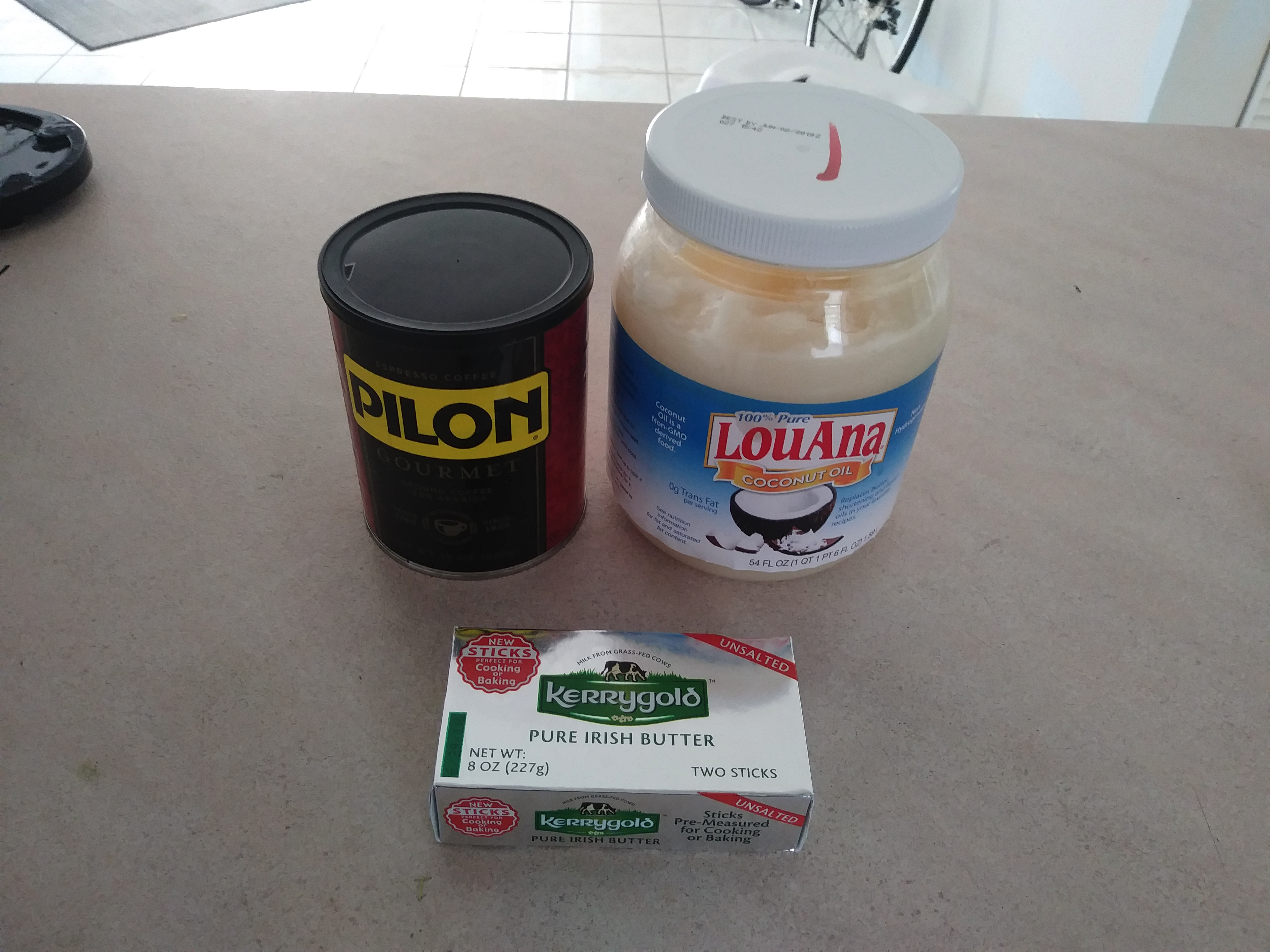 Accompanying my breakfast will be a Bulletproof Coffee. I like Pilon Gourmet Coffee and I will be adding 1tbs of Kerrygold Butter as well as 1tbs of coconut oil and then blending it up to emulsify.