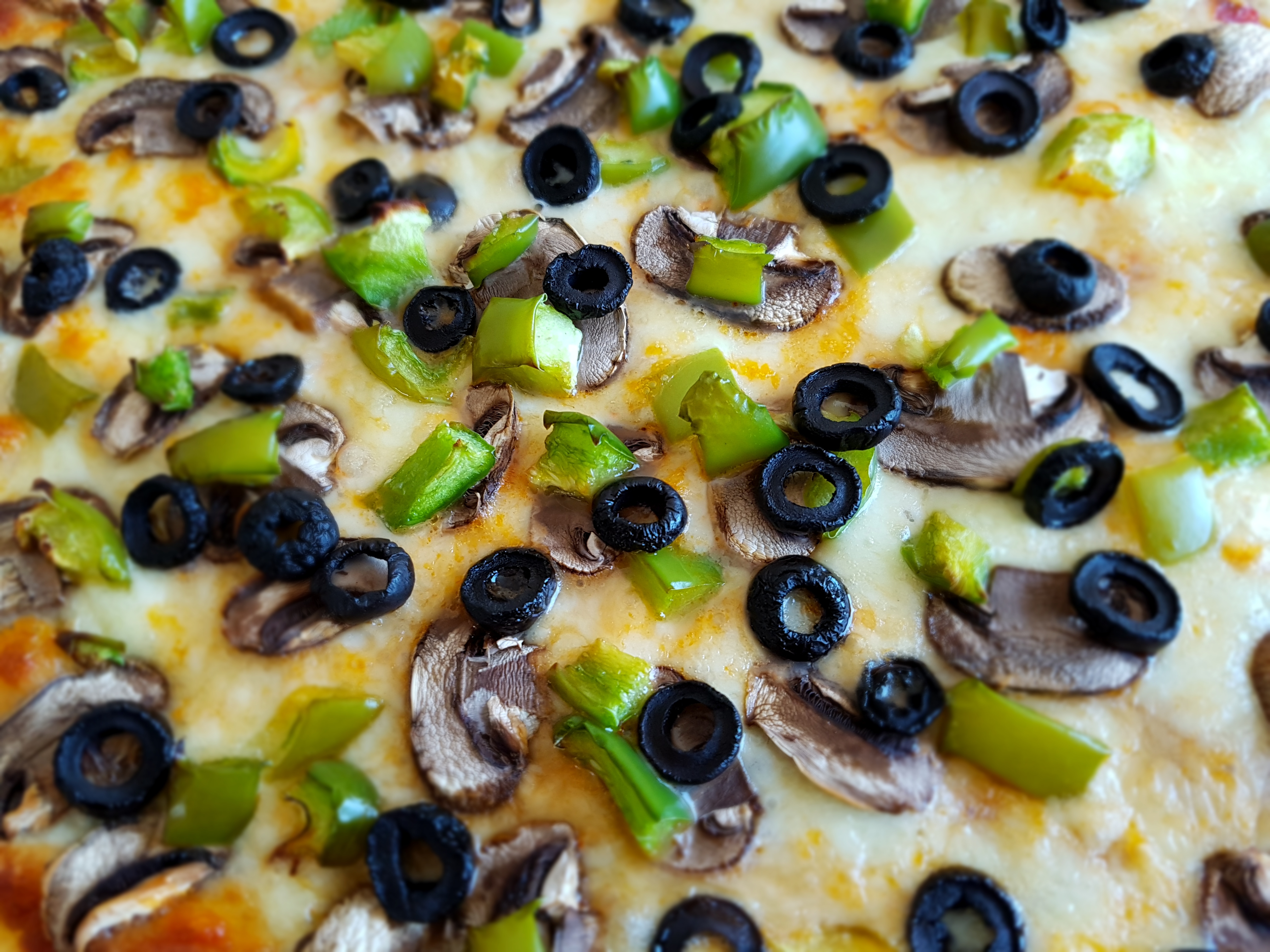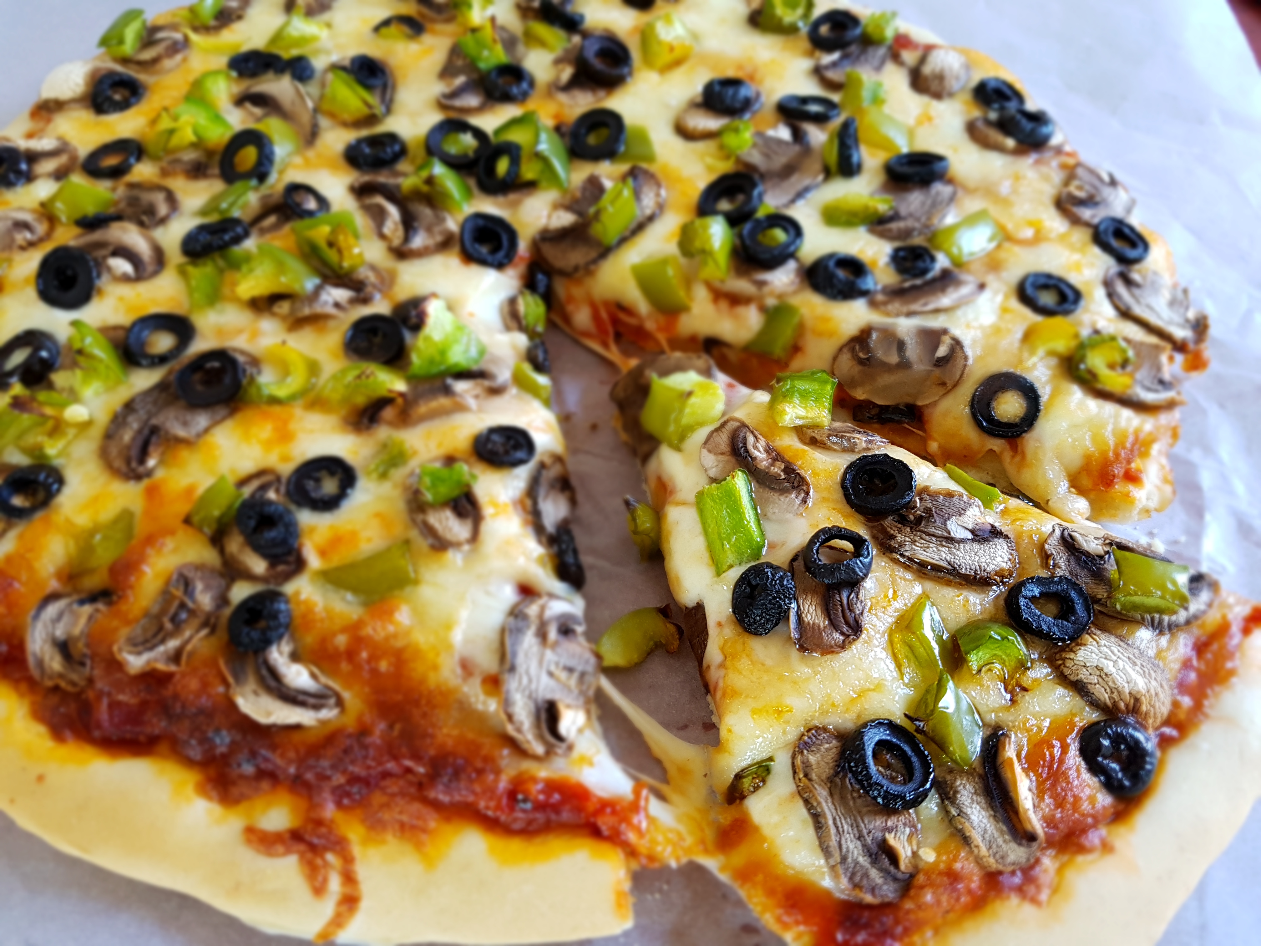 This pizza is my husband's favourite pizza. It has obviously cheese, but also green bell peppers, olives and mushrooms.