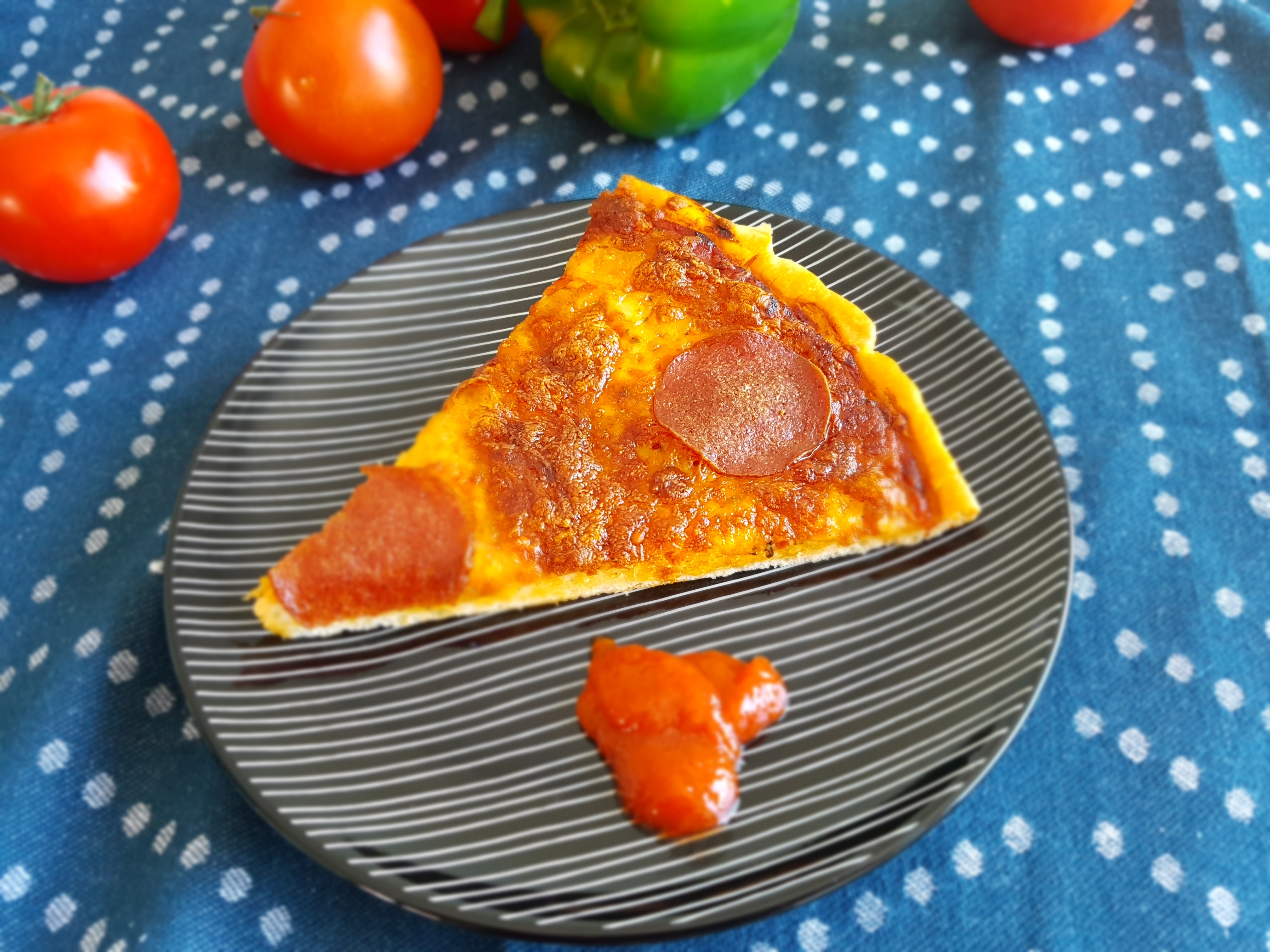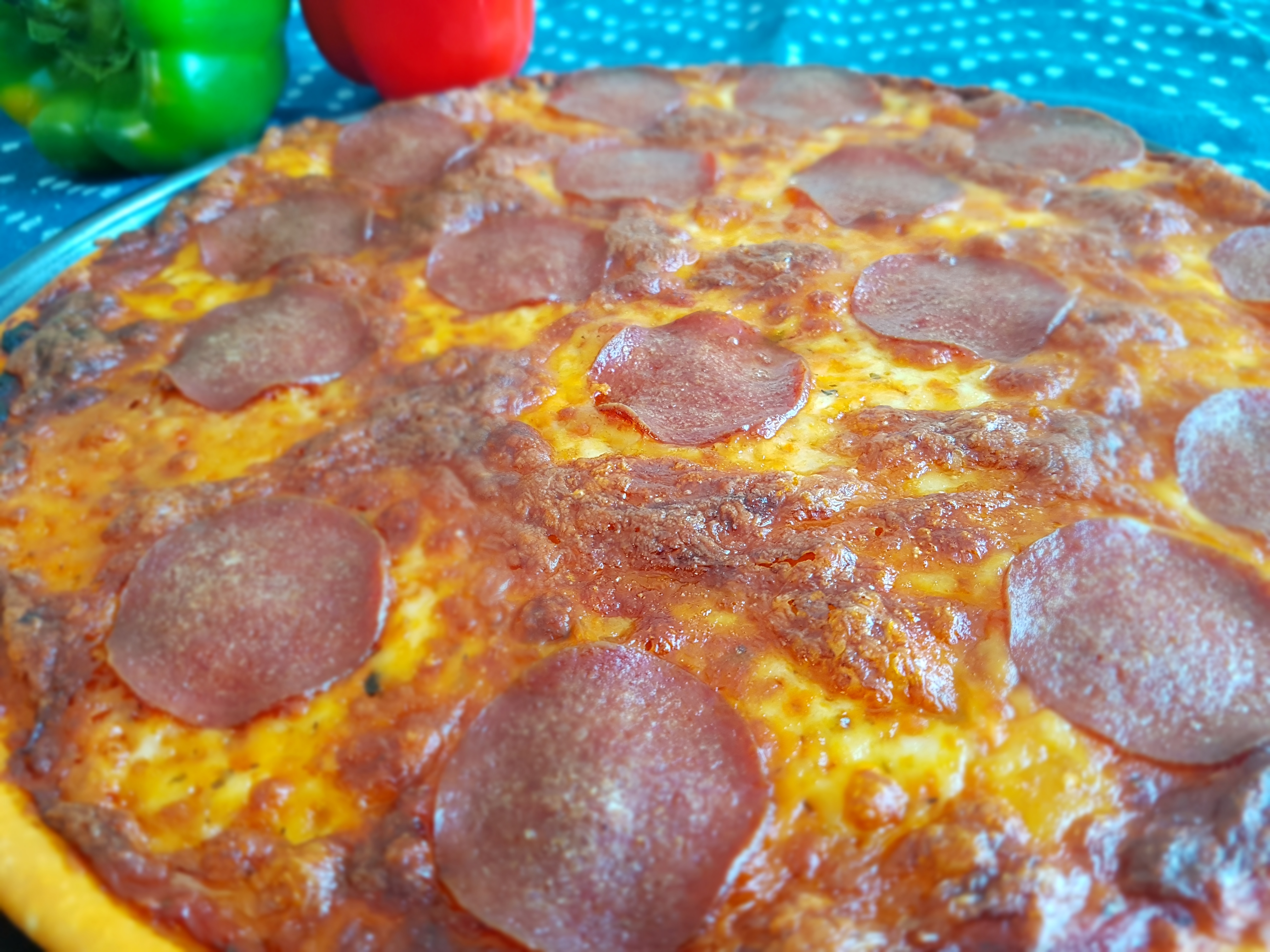 My favourite pizza is the one with turkey beef salami. I like to eat it with chilli sauce. My kids love this one too the most.