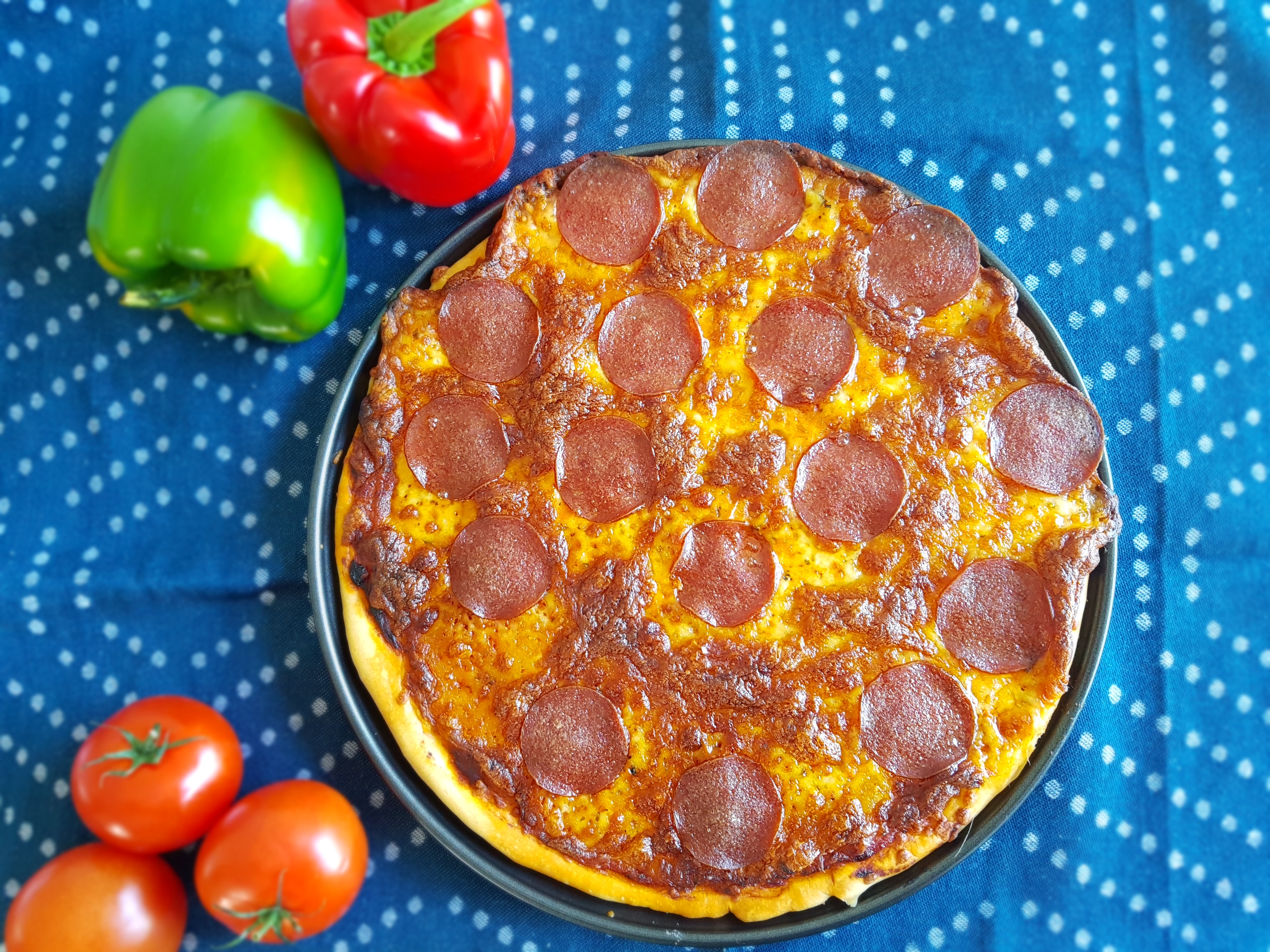 Instead of salami I used black olives, green bell peppers and mushrooms.