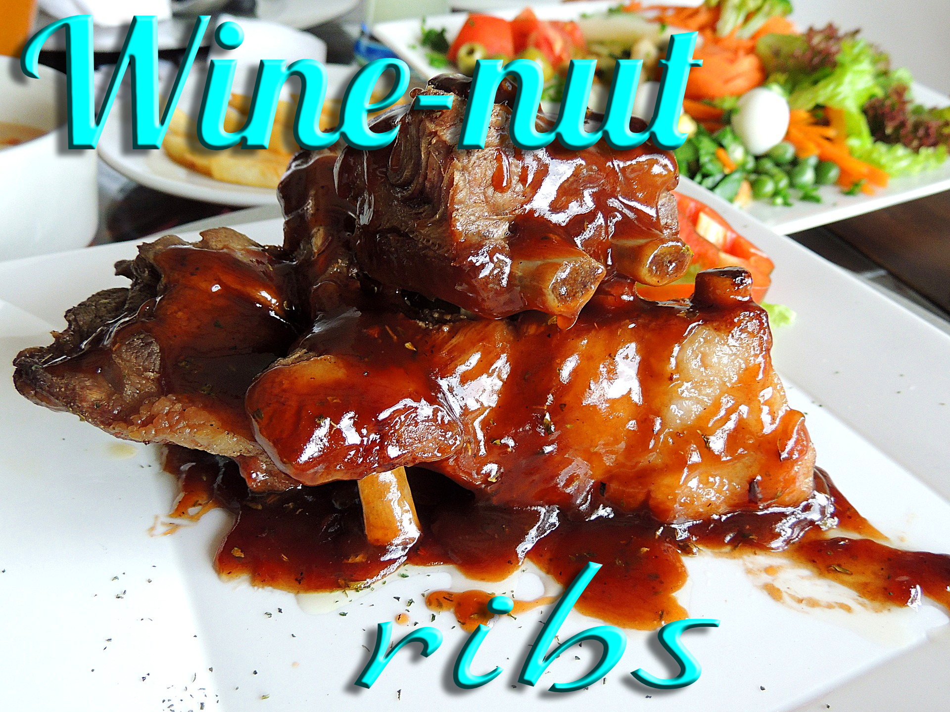 Ingredients: pork ribs - 1 kg; prunes - 200 g; cumin- 1 teaspoon; white dessert wine - 100g; walnuts - 100 g; pepper, salt