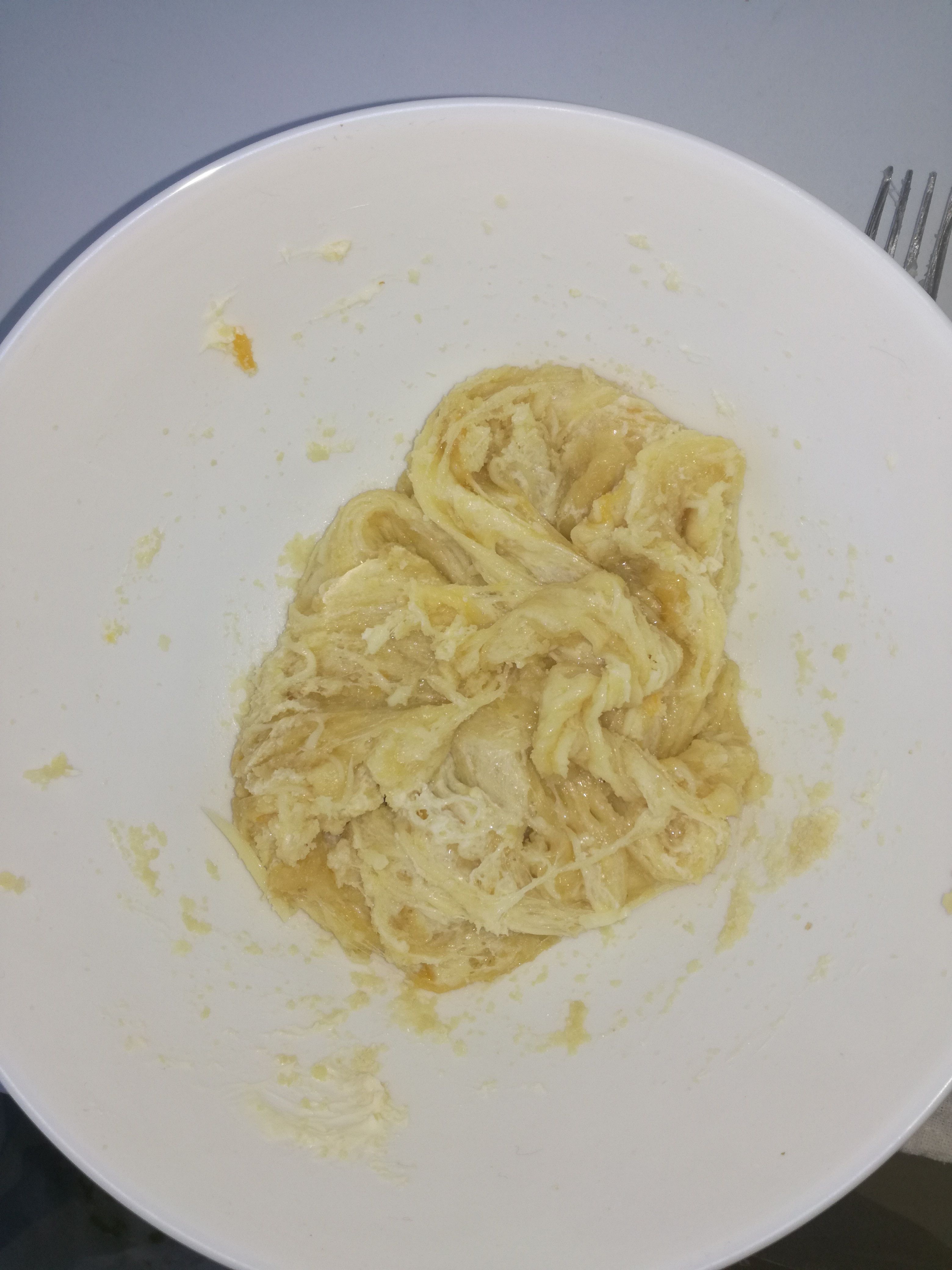 - Add the egg, salt and herbs/spices (in my case it was garlic). Mix with a spatula until well mixed.
