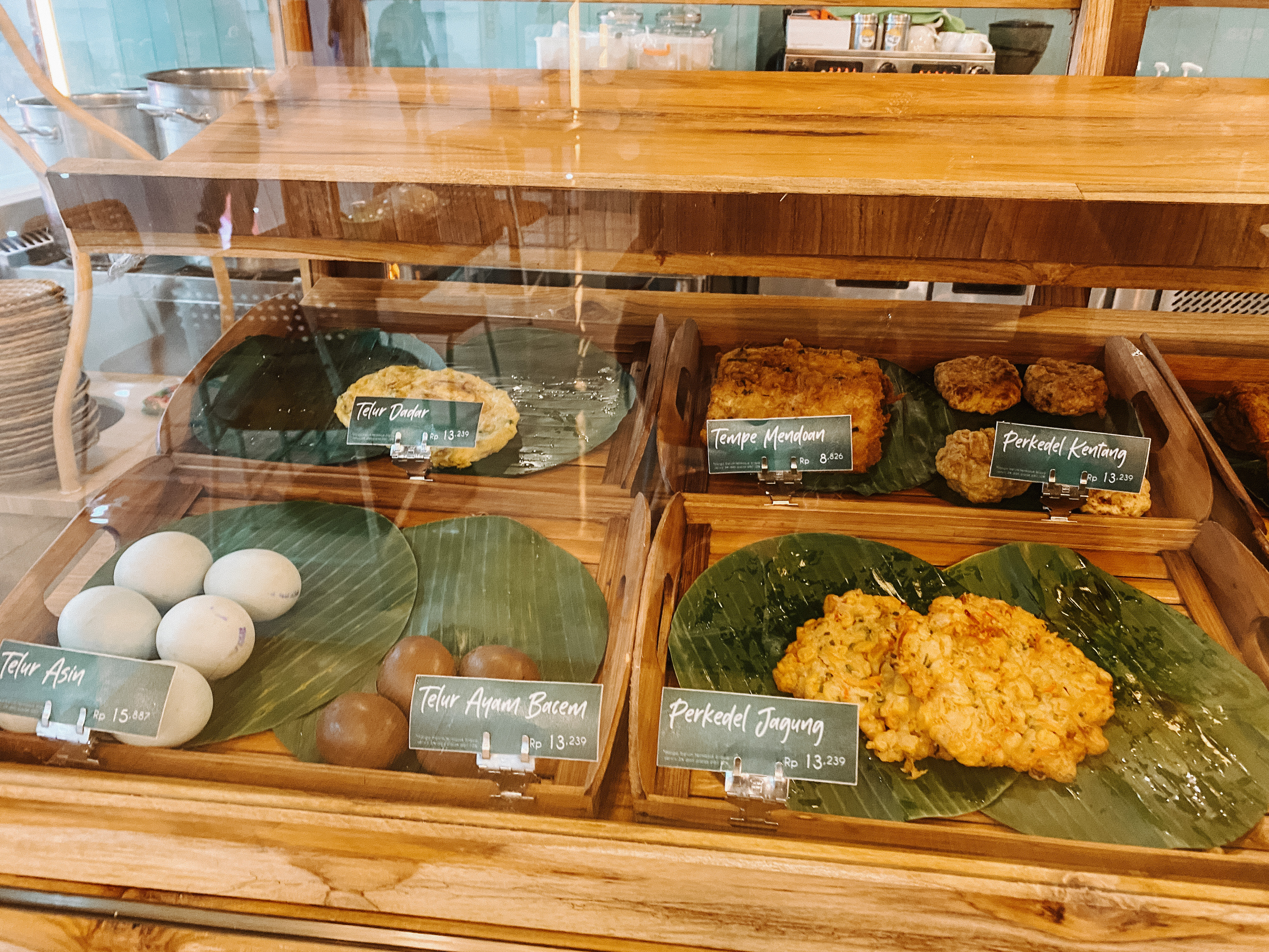 Here i will share the food that i ate when i was in Ngurah Rai Airport in Bali. My flight was in late afternoon, its a 5 pm flight. Supposedly, i had a lot of time to relax before i have to go to the airport. But you know, its not me if there’s no problem. I rescheduled my ticket no i need to arrived 3 hours before my flight schedule to pay for the service. Its kinda sucks that they dont offer the online payment. Anyway, i had to go from my home stay at 12 pm and i arrived in the airport around 1 pm. Maybe because of alk the stress during the travel, i got my ulcer came just right after i arrived in the airport. I didnt bring my meds with me so right after i finished put my luggage and check in, i was looking for the pharmacy in the waiting room. I bought the med and took it right away. The meds that i bought was Omeprazole. We can consume omeprazole one hour before or after consuming food. Since mg stomach is already in a lot of pain, i took it immediately, waiting for an hour, then looking for food. When i was feeling sick, i dont have energy nor appetite to eat something good. The simpler the food the better for me. That is why its quite hard to find a restaurant in the airport. Well then, when i look around near the gate where i supposed to wait, there’re a restaurant with warung concept. The name is Aneka Kudapan. Its a traditional looking restaurant and i saw the food in their stalls and getting very interested.