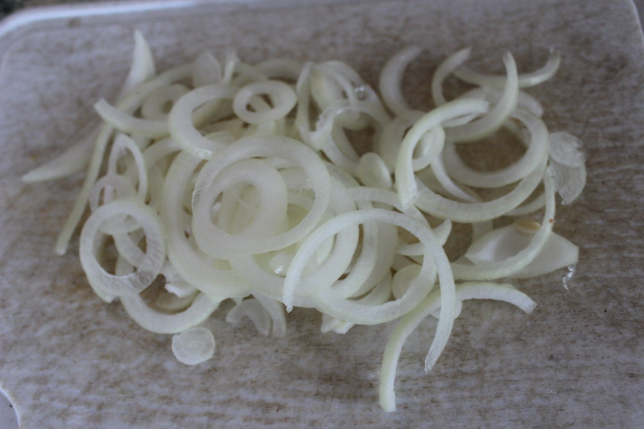 2. Onions clean from the husk, cut in half and cut into half rings. Add to a pot of water the potatoes and onions, cook until tender.