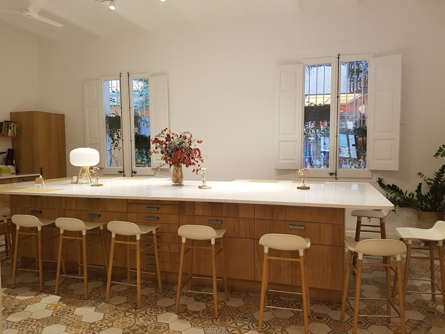Lorsque je suis entrée dans le restaurant, j'ai été accueillie avec le sourire, par une jeune femme qui n'était autre qu' Eva Roca, la fondatrice du projet. Elle est éco-chef et coach en santé et dirige également l'école de cuisine et d'alimentation naturelle et végétale CRUDIVEGÀNIA. En 2014, elle a créé la première formation professionnelle d'Espagne pour devenir un expert en nutrition et éco-chef de cuisine. En 2016, elle a reçu le prix Biocultura Eco-Gastronomy. Bravo à elle pour ce beau palmarès! =)