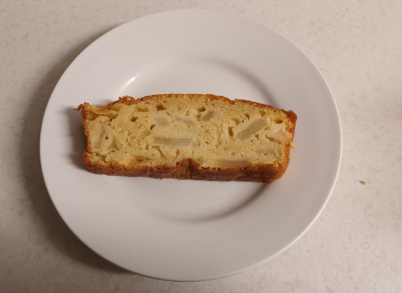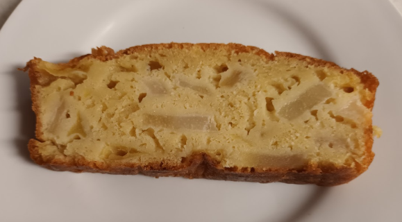 Close-up of cake slice : it was very easy to cut it into slices, ie the crumb was 'rather' moist.