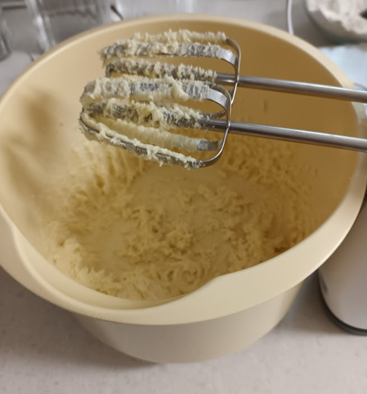 This time I just went for a normal cake recipe - using slightly less sugar. I used the electric whisk to soften and cream the 80g of butter and the 80g of caster sugar until it was fluffy.