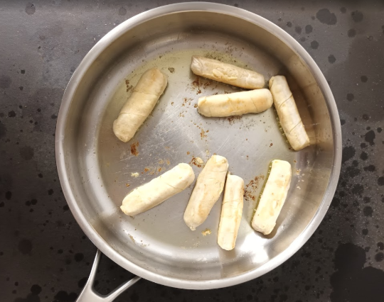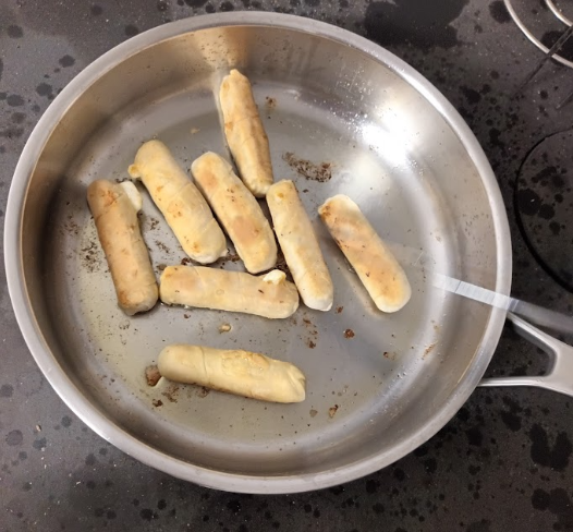 The tequeños were stuck together, but I didn’t dare try to break them apart in case they broke off so I just put them on the hot oil for about 5 minutes .