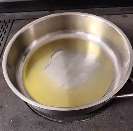 I started by heating some oil on the woodstove as the induction hob tends to ‘burn things rather quickly’. Using the stove is safer as both the pan and oil heat up slowly - which is also a negative feature if you are hungry and want to eat something quickly.