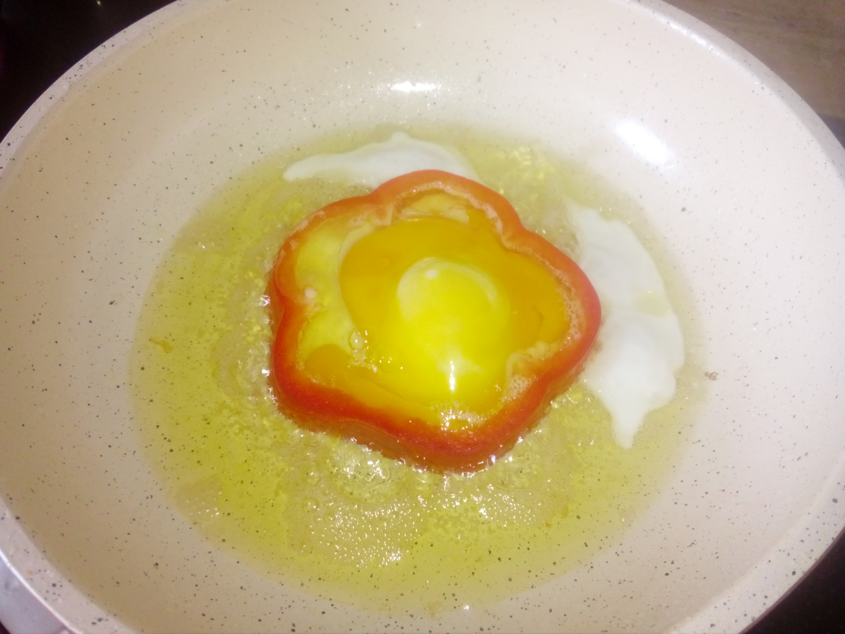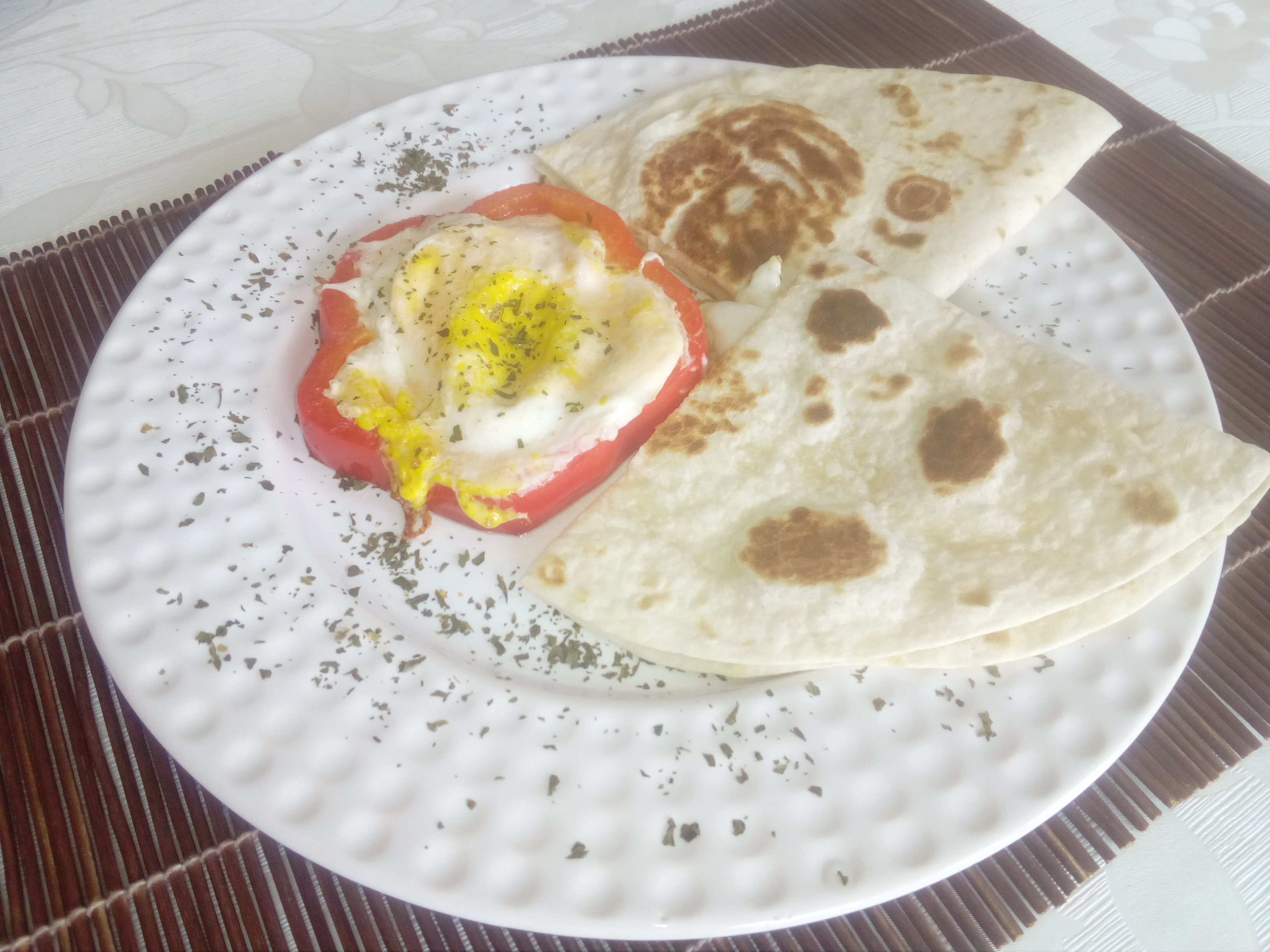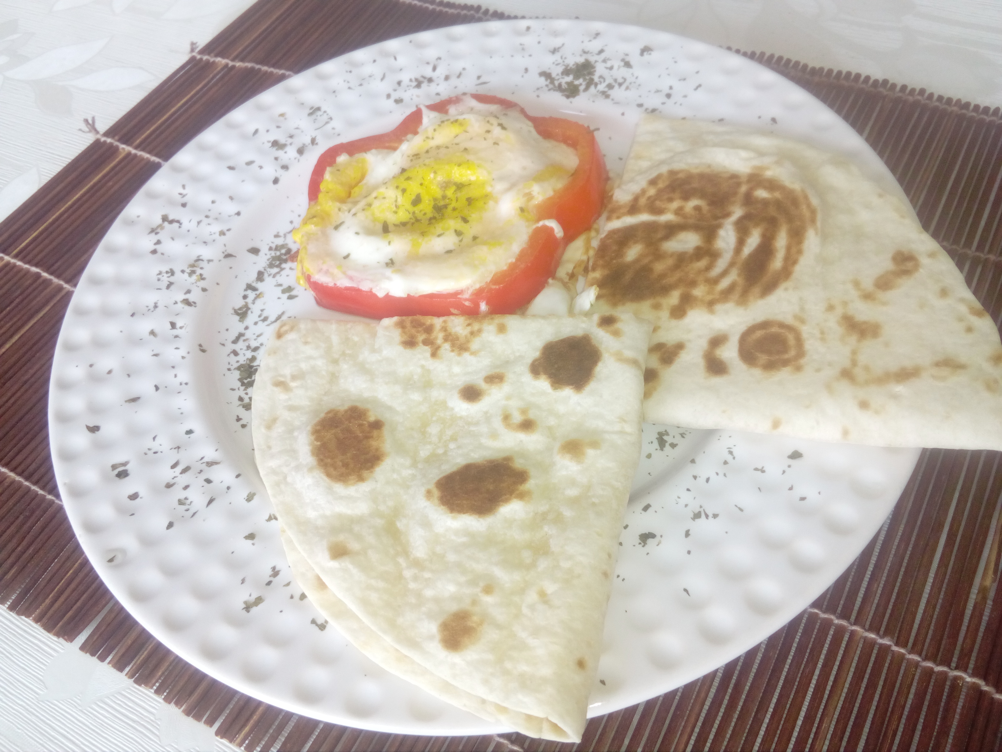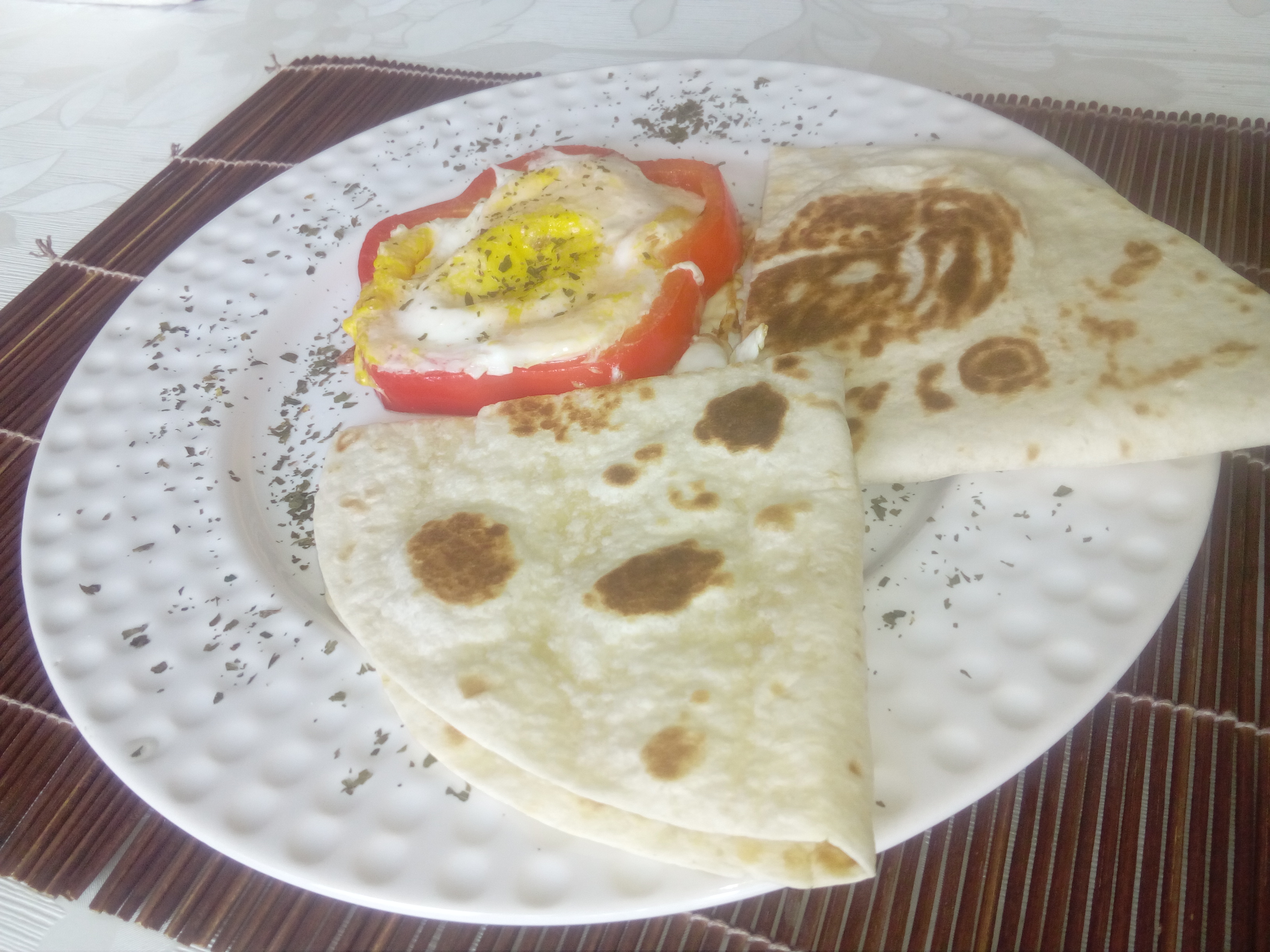 From the beginning, cut a slice of peppers in the tray and let it warm the oil, then add the egg and put the lid and let it cook for another 5 minutes on medium heat, then take the -tortilla wraps heat into the tray return the cheese and stuff in two, then serve breakfast.