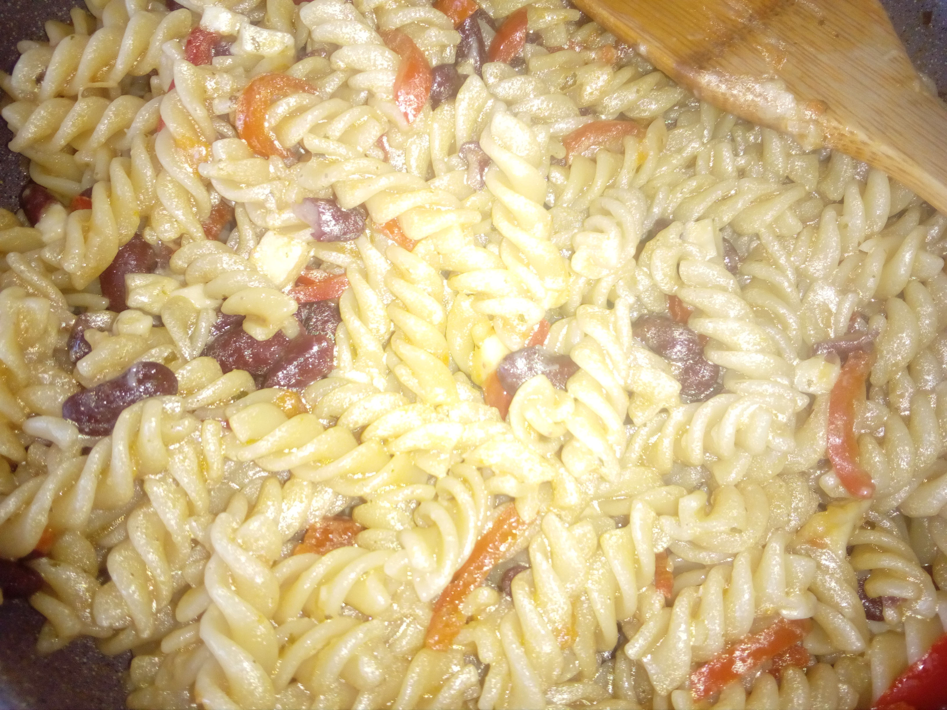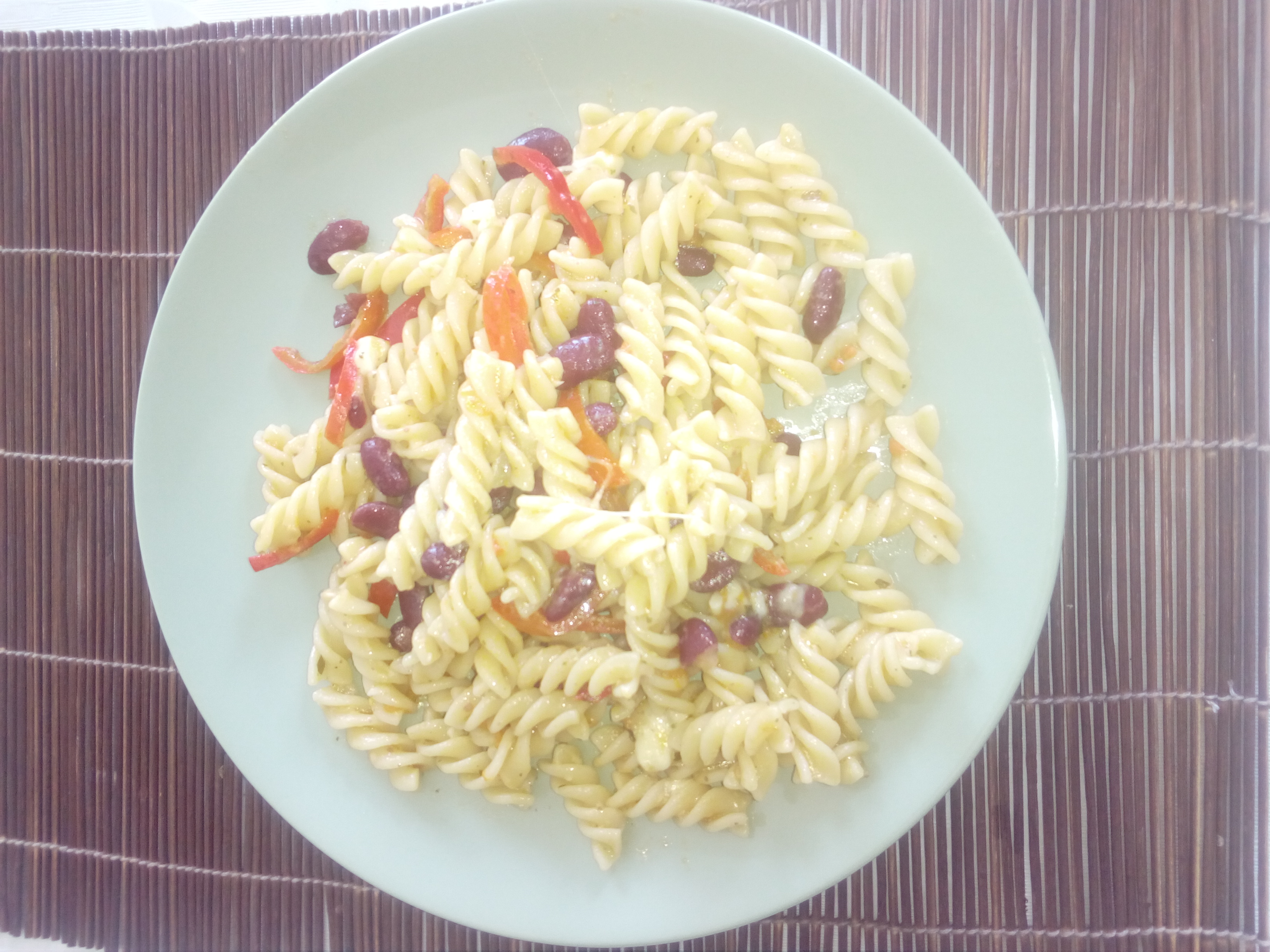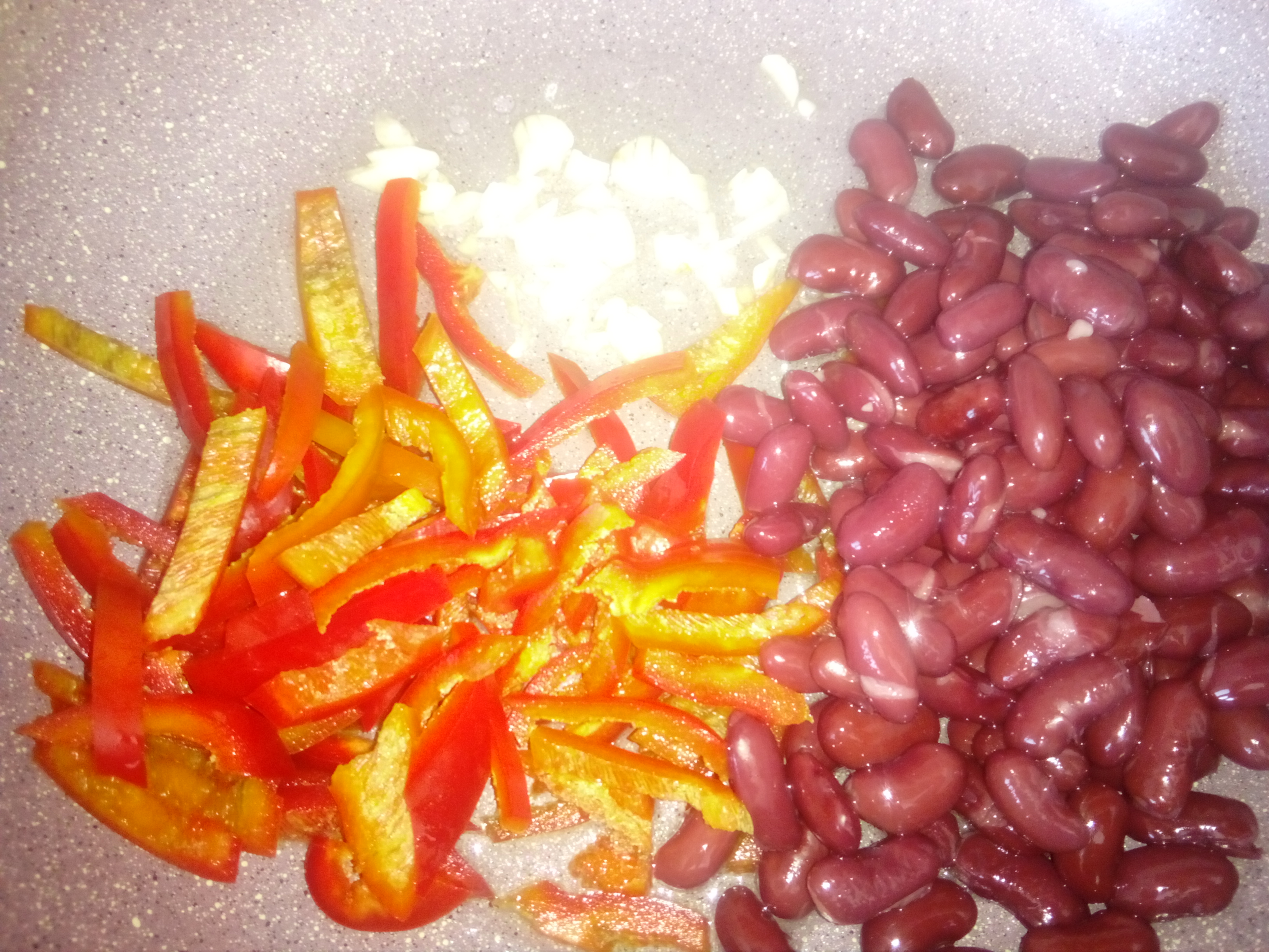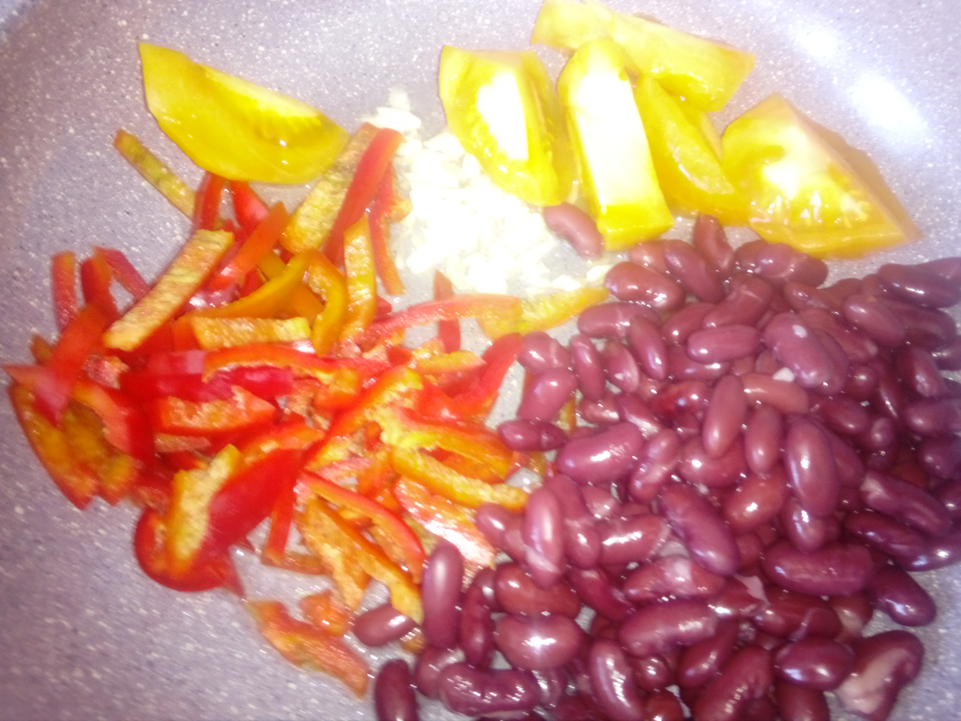 This recipe is cooked very quickly, in 15 minutes after boiling but we have to serve the table, cut the pepper thin slices, the garlic and the beans are added to the tray and fry a little, add a few spices and leave to cook on medium heat in the meantime add the pasta to boil, when to boil pasta is added over our sauce and lunch is served dinner.