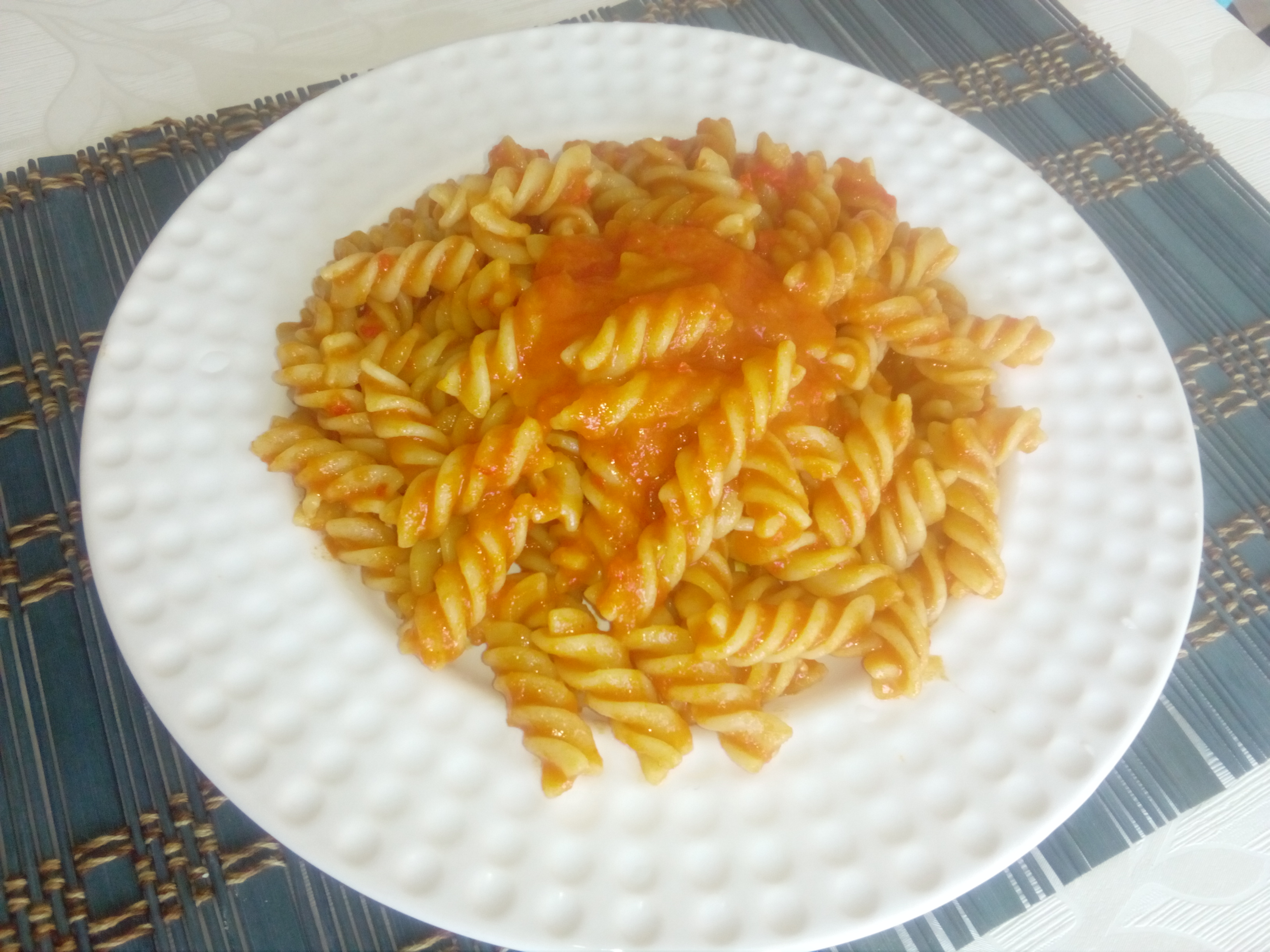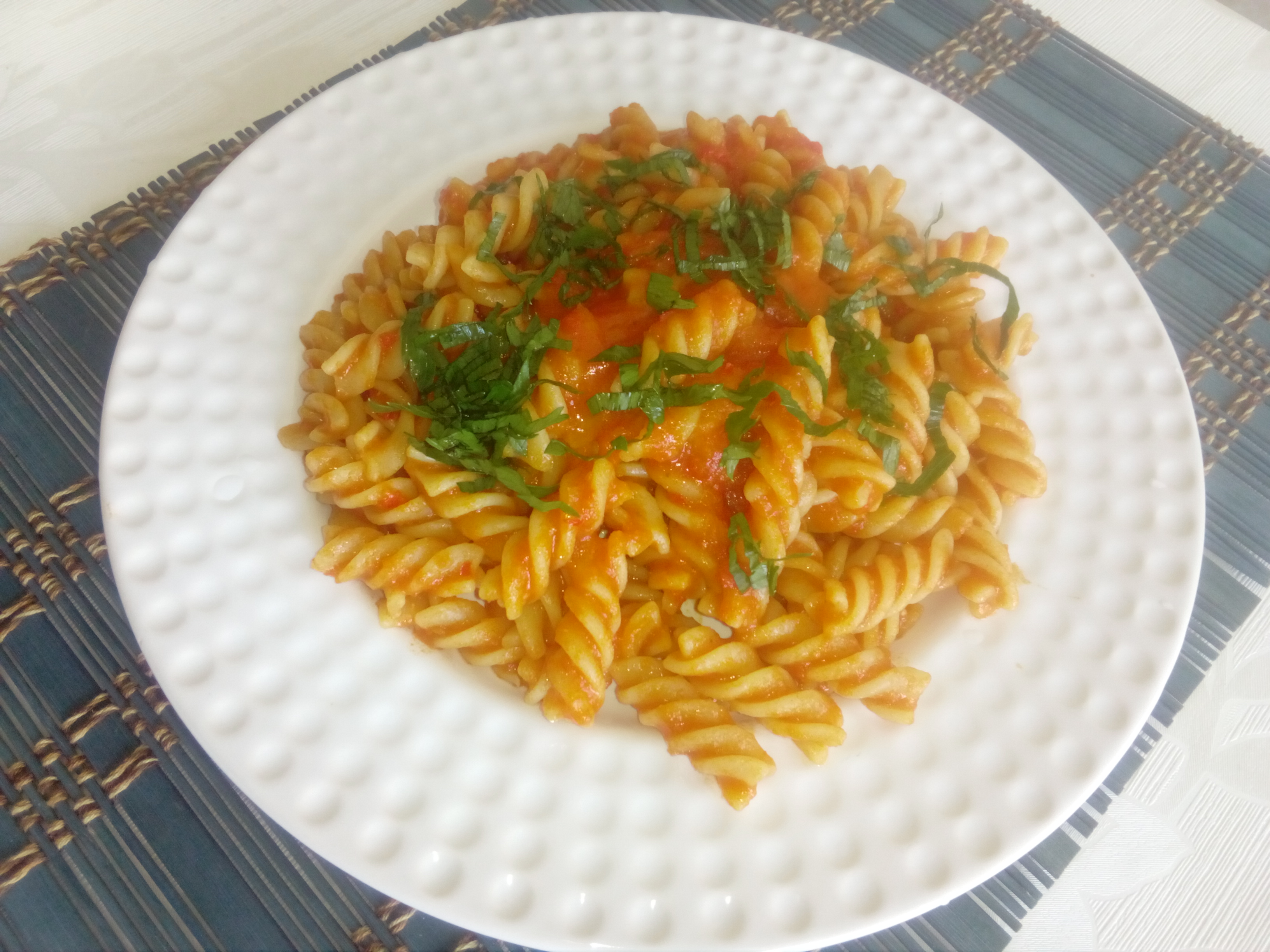 This recipe is made in the following way add a little olive oil add the onion to the garlic and fry a little, then add the tomato sauce and add a little water and let it cook after about 15 minutes add -organic cooking cream and leave the time to boil macarons for 10 minutes, after adding over our sauce and eating, I assure you that they were very tasty.