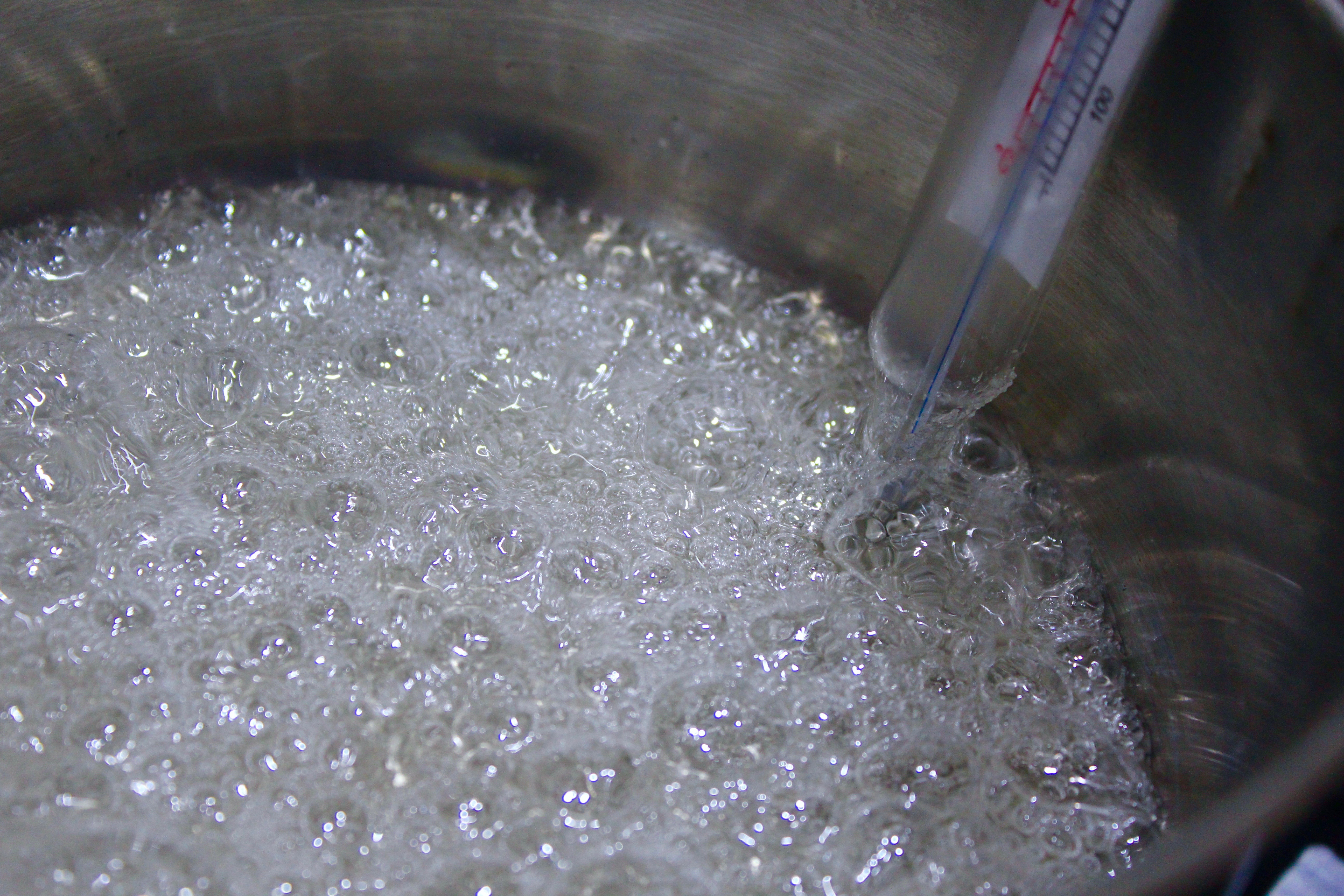 - In a small saucepan combine granulated sugar with water and place on medium heat. Using a candy thermometer measure syrup temperature. When it reaches 112C start whipping the egg whites. When the syrup reaches 118C pour it over the whipped egg whites while mixing continuously. Continue beating until the bowl has cooled slightly, and glossy stiff peaks have formed.