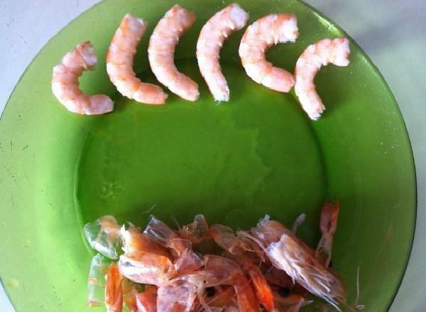 • Once the shrimp are cooked, we begin to peel them (remove their skin).