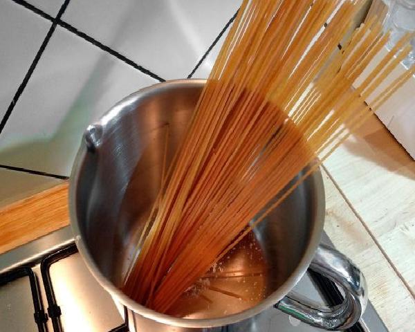 Once we have all the ingredients together and at hand, we start by cooking the pasta, following the manufacturer's instructions. Do not forget to add a spoonful of oil and a touch of salt to the water. Let it cook until it is al dente, and drain.
