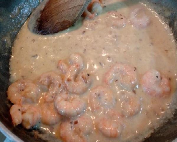 The shrimp are allowed to cook for a space of one minute, without letting them go through cooking. Then add the cream and mix until it starts to boil, at that point it is removed from the fire.