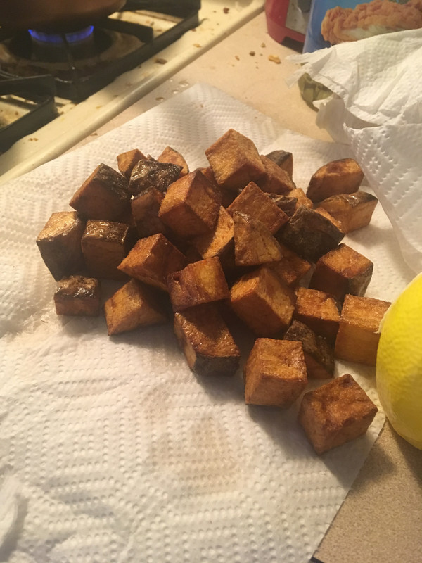 I googled for a recipe, but I wasn't satisfied with the photo of it, so I decided I'm just gonna cut them up and fry them in oil. Worked.