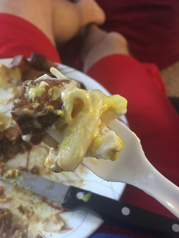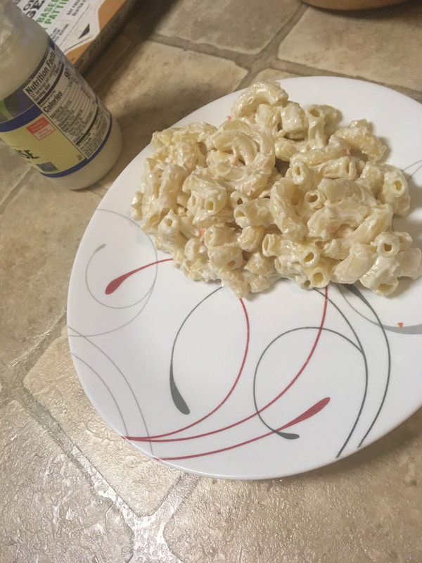 I learned that the garbage plate mac salad is meant to be deliberately simple. A base to absorb all the other flavors, rather than trying to be special or have all the flavors itself. So the recipe I followed was basically just mayo, salt, and some shredded carrot.