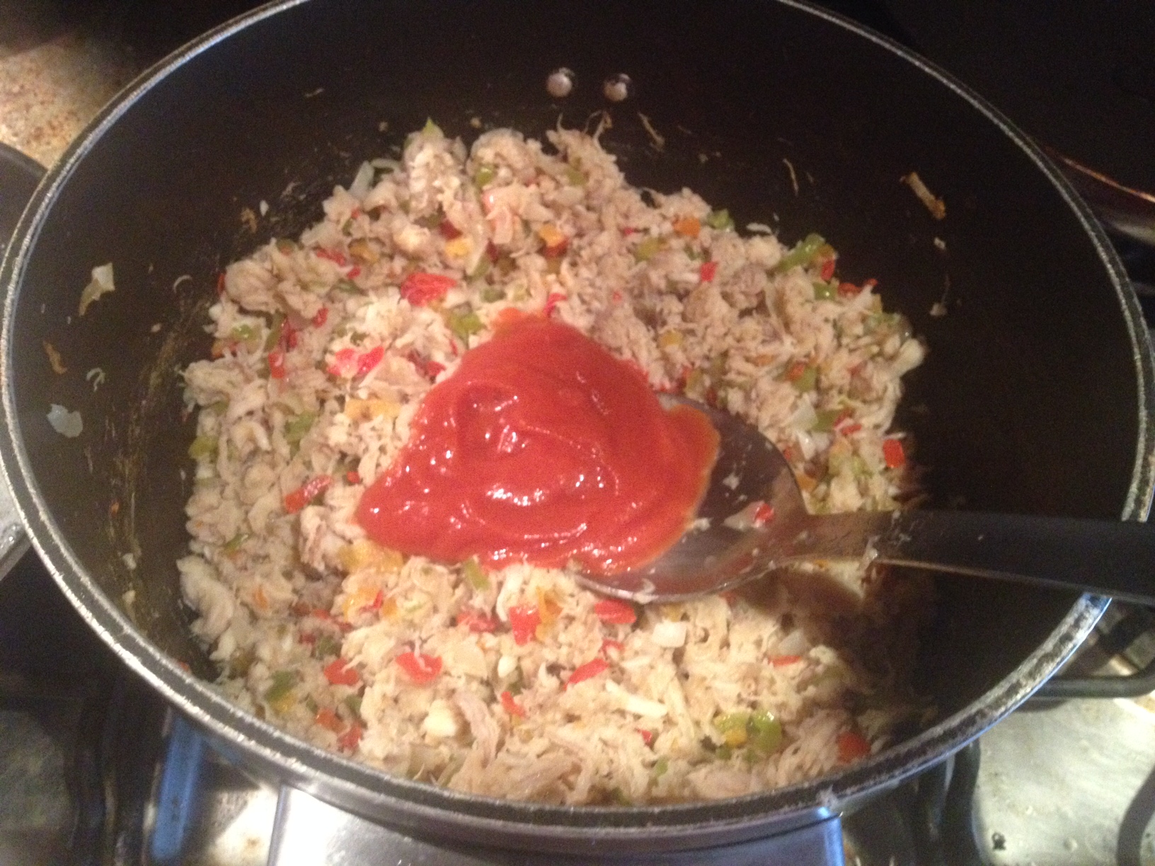 Por último colocamos la pasta de tomate, cocinamos por 10 minutos.