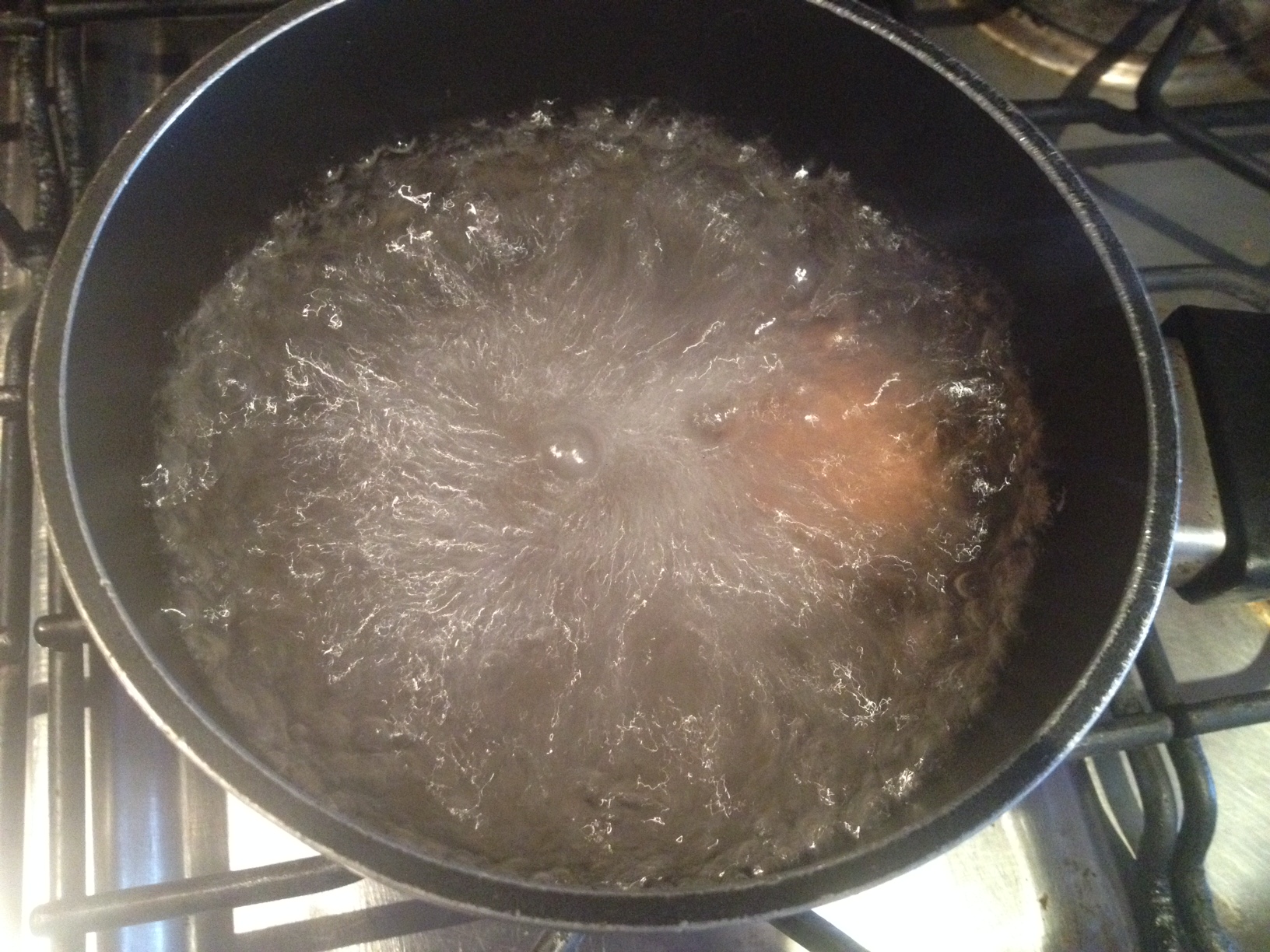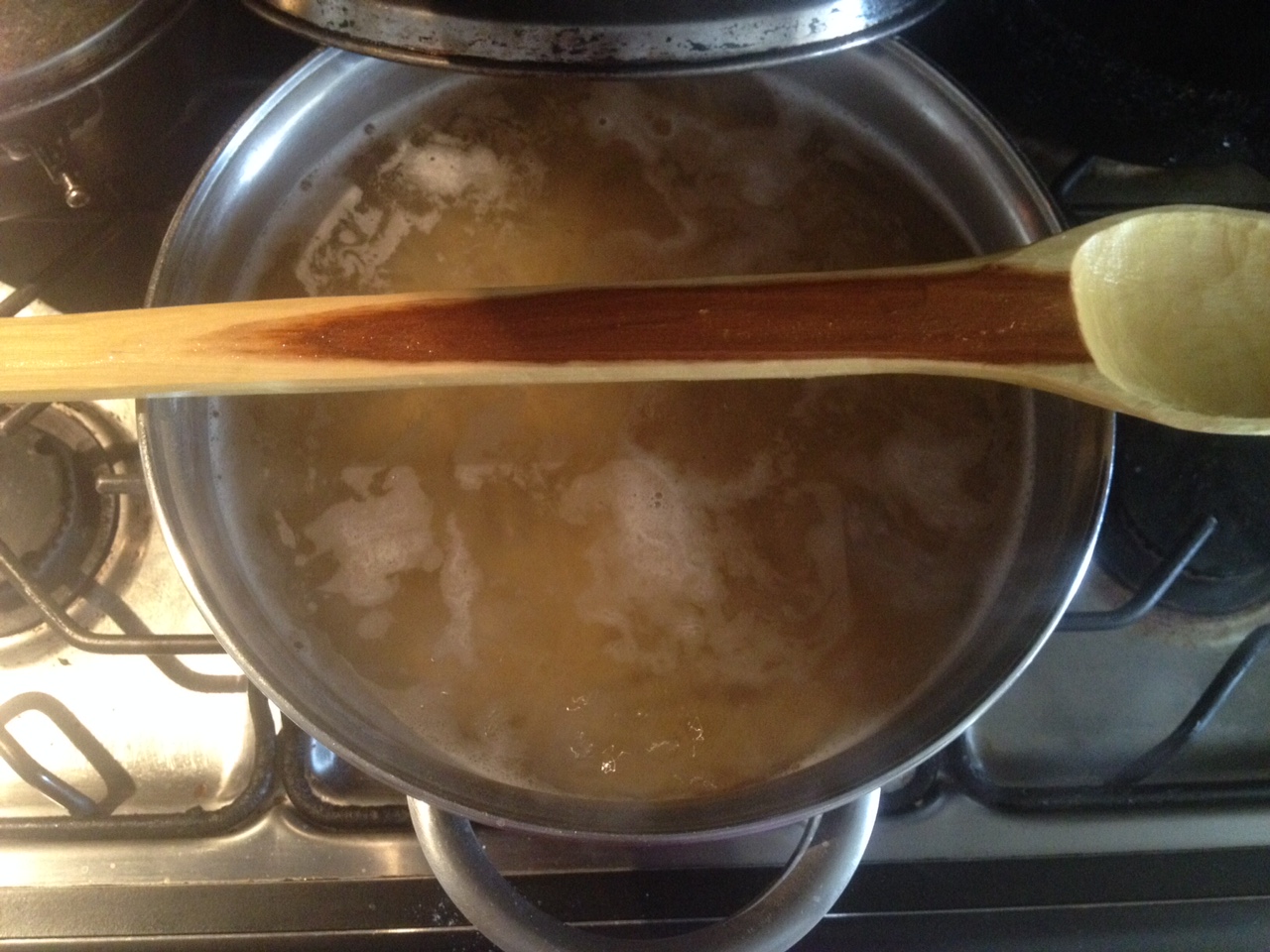 Necesitas hacer unas pastas: espaguetis, tallarines o vermicelli rápidas porque mueres de hambre, solo hazlas de tu forma habitual y le colocas una charada de madera en el centro de la olla, le pones la tapa a la olla encima de la cuchara, así evitaras que se derrame el agua y tus pastas estarán lista rápido.