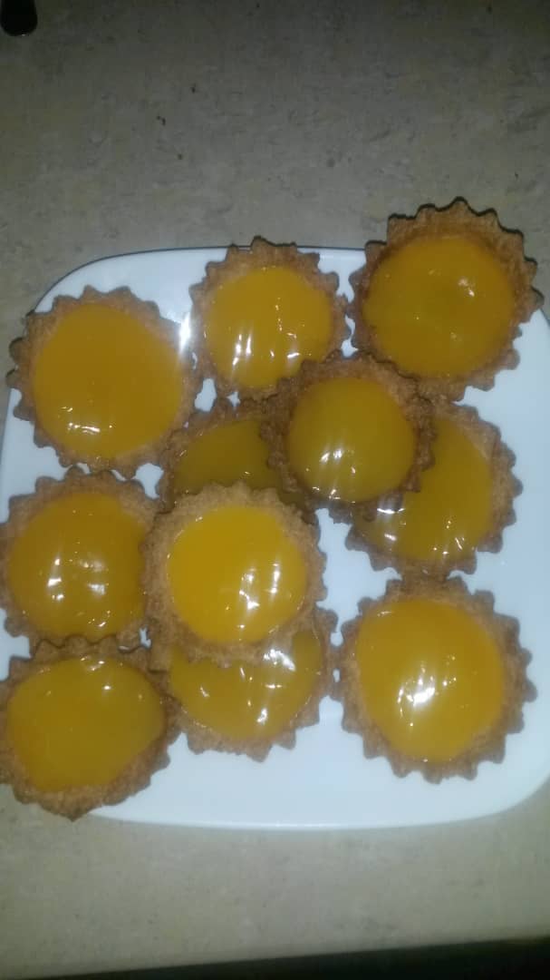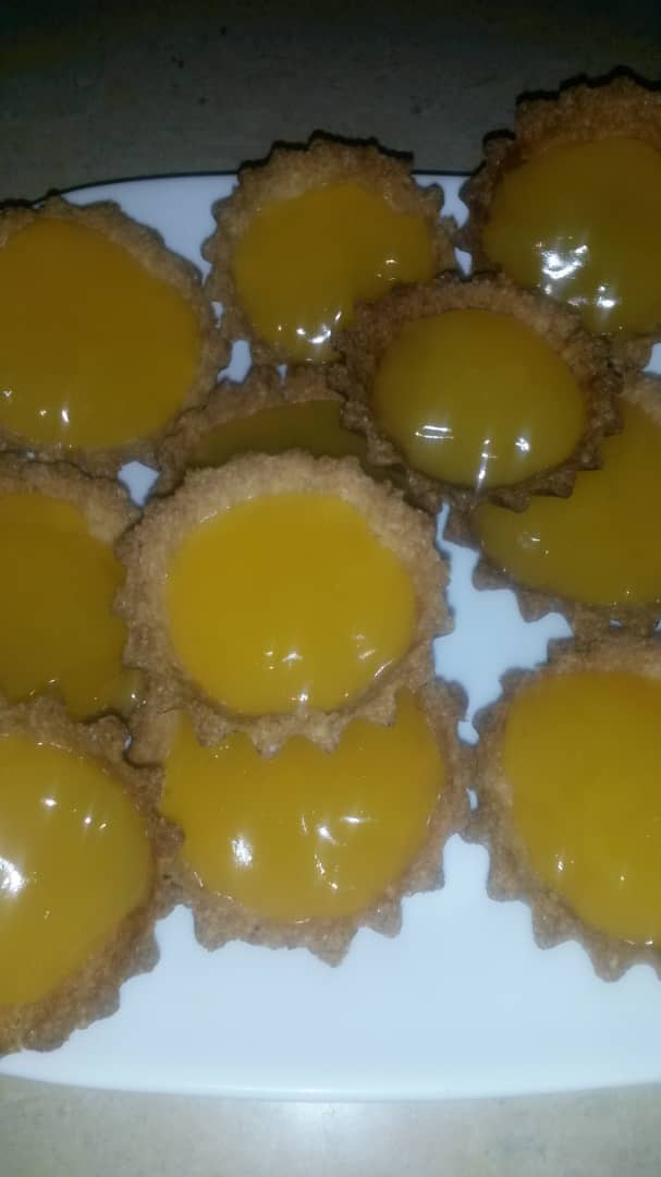 Place the cornstarch in a cup, beat with the yolks of the eggs in a pot, place the water, the juice of the lemons and the sugar, once the water adds the fecula while stirring, mix constantly with a wooden pallet and then bring the cookie caps and ready, ready the preparation to taste with my little one.