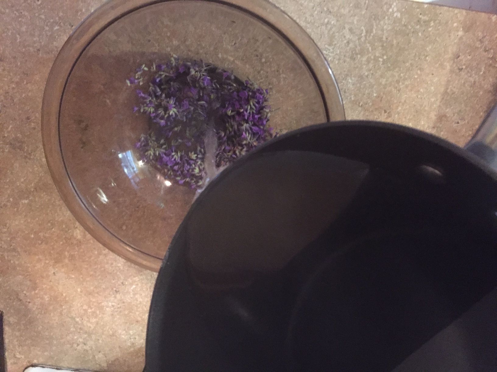 1/4 cup fresh lavender (Or around 2 TBSP dried lavender)Bring 2 1/2 cups of water to a boil, and stir in the stevia.
