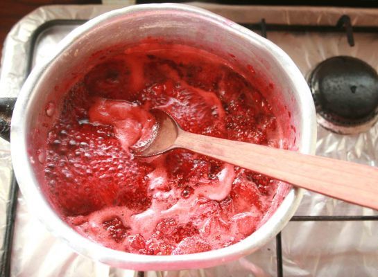 Add the non-aromatized jelly to the mixture that you have put aside, little by little. Pour in the form of thread and mix with a wooden spoon without stopping, until it integrates completely with the rest of the ingredients. If you notice that the jelly does not integrate well into the mixture, you can heat the contents in a bain-marie and stir until everything is homogenized. Use only steam from the water bath or apply for a short period of time, as excess heat damages the gelling of the mixture.