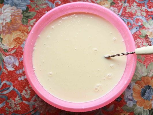Grease the mould with vegetable oil. To facilitate this process, dip a towel of absorbent paper with oil and then spread it on the surface of the mold. Then, pour the final mixture into the mould and tap on the bottom. This evens out the distribution of the mixture. Refrigerate the punch cream jelly for at least 2 hours, even better if you wait for the night.