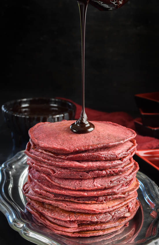 All-Natural Red Velvet Pancakes with Dark Chocolate Mocha Syrup(FOOD PHOTO SHOOT)