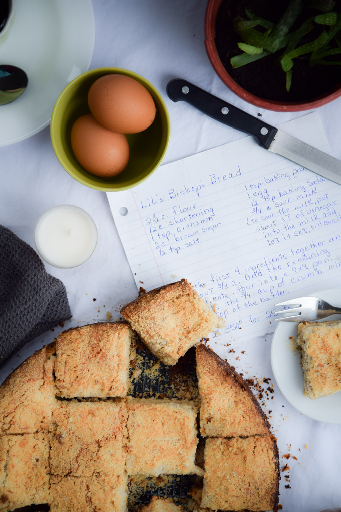 So you may be wondering what exactly is Bishop’s Bread. Well it’s really just a fancy name for coffee cake, but it’s a really good coffee cake. I wanted to keep the recipe as close to the original a possible but you know I can’t help tweaking things just a bit. I’ve made it a few times before and I grew up eating it when Meme made it but there were 4 little things that I thought could be improved on.
