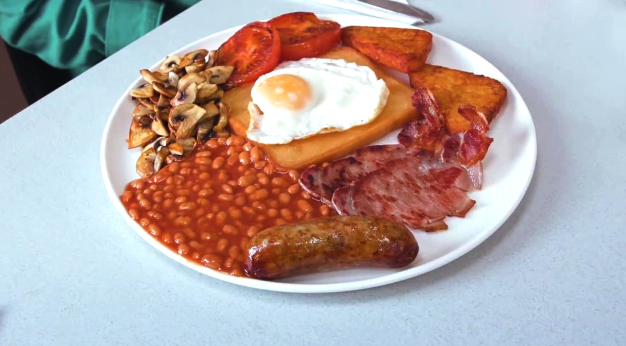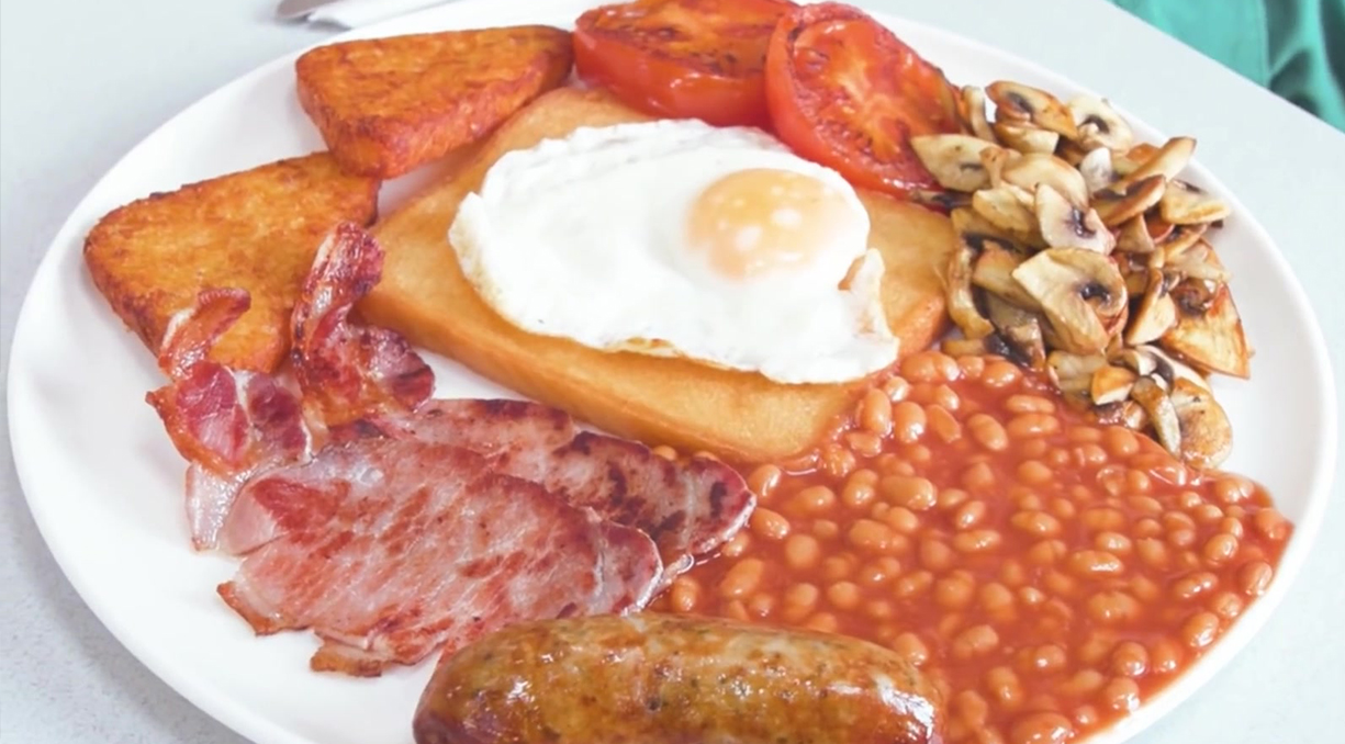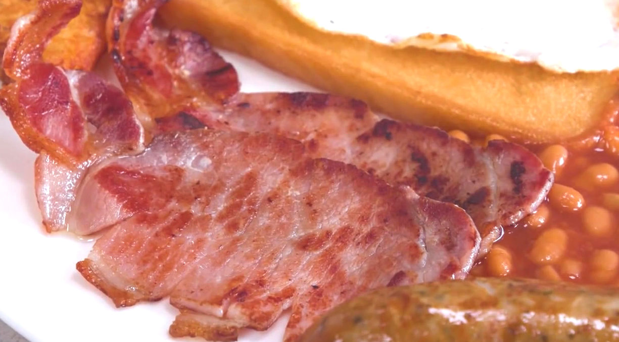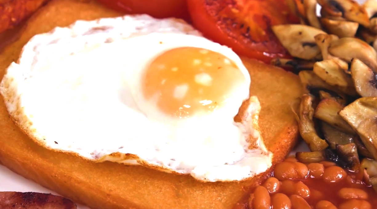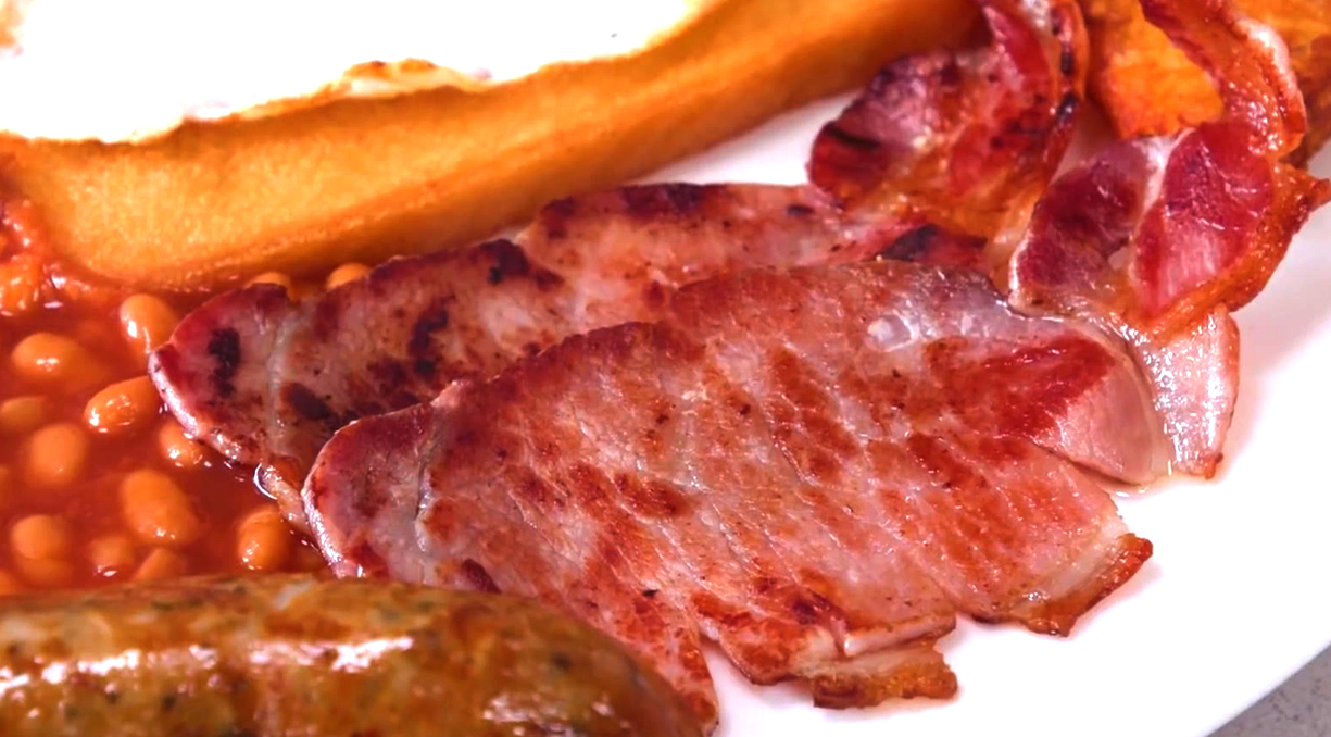 We want to see some kind of egg whether it's fried, or scrambled, or poached. As long as it's cooked well, that's fine. Same time We want some bacon. We're looking for some nice, crispy bacon and some sausages as well. Some places toast their bread and then some kind of bread, some places fry their bread.
