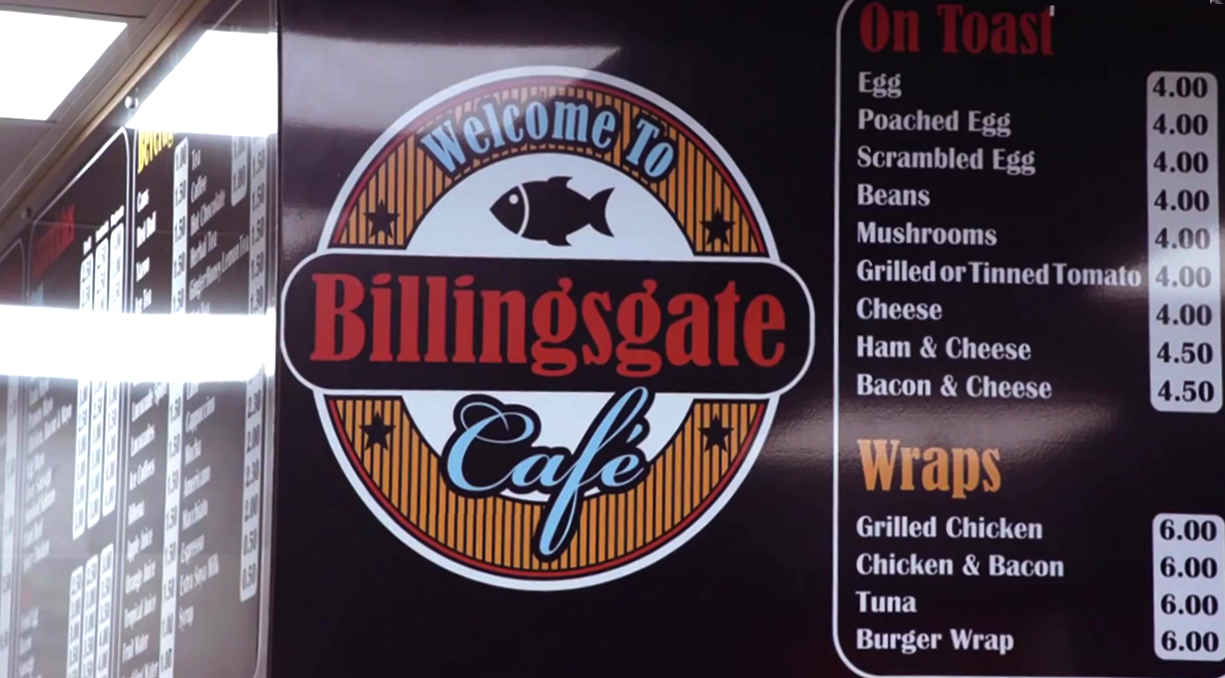 There have a Billingsgate Cafe That is our first target. We are on a mission to find the best full English breakfast in London. You might ask me what is a full English breakfast? Well, it's supposed to be a massive breakfast that absolutely sets you up for the day.