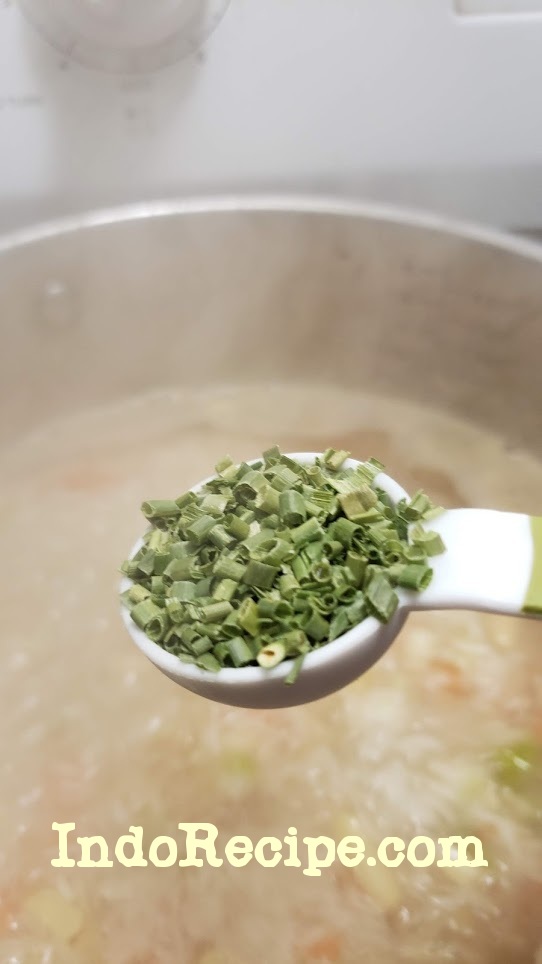 The following congee is topped with gingered chicken. It is great to serve as is (with the chicken), even better with sliced onion, dried chives, pepper flakes (or white pepper powder), and more sweet soy sauce, by the way :D