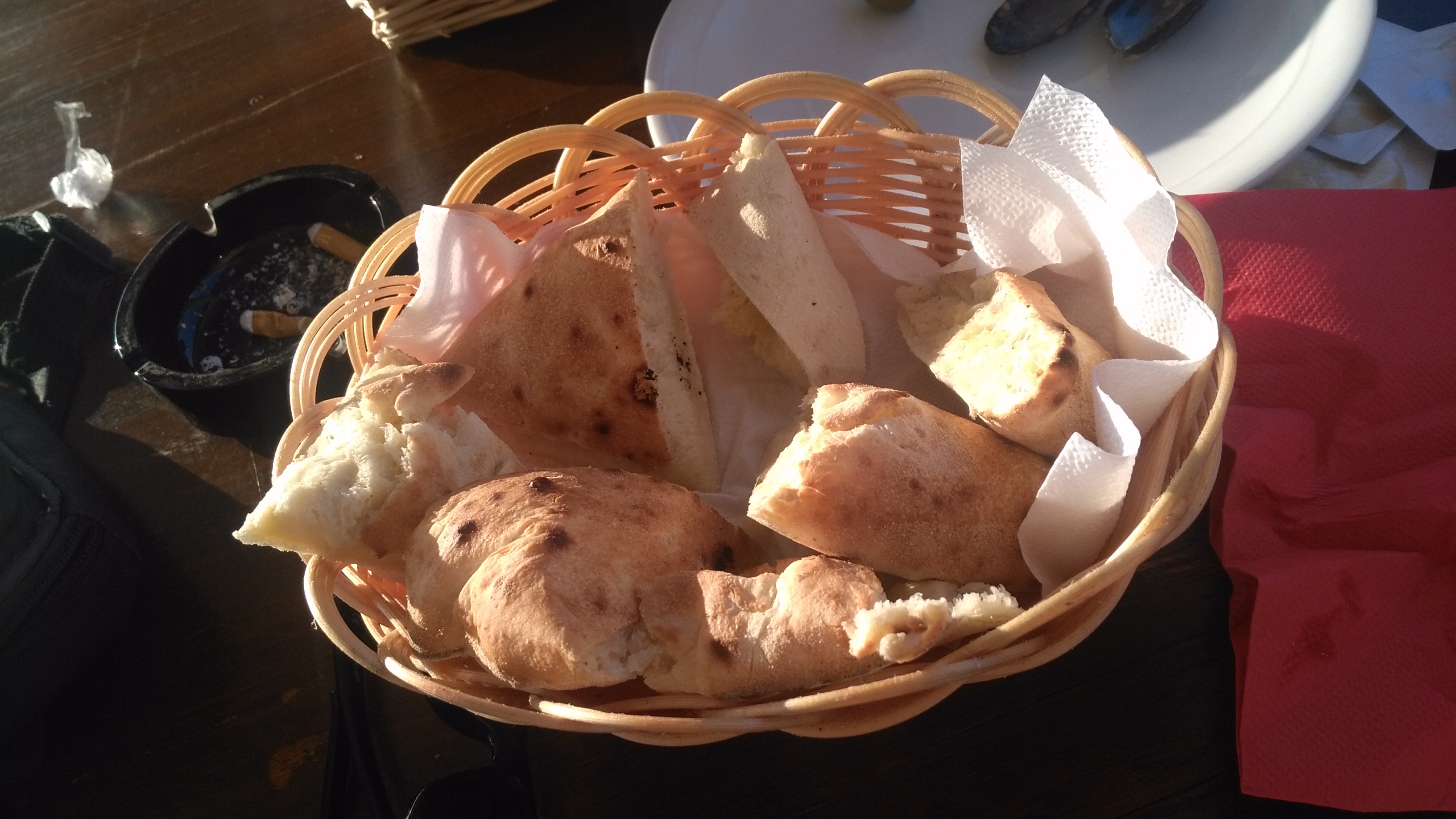 Shellfiskh is. cooked with olive oil, wine, garlic, breadcrumbs and fresh herbs.