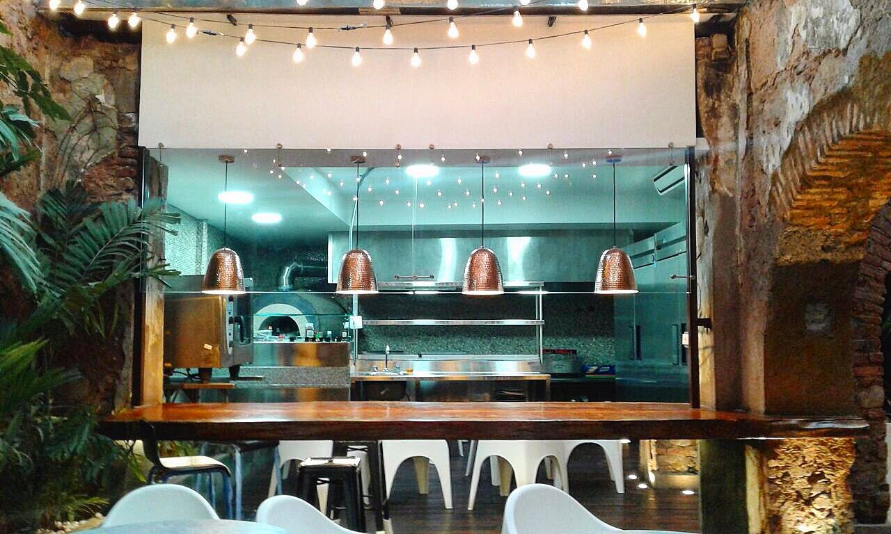 Se trataba de una cocina abierta el cual los comensales iban a poder observar todo el movimiento en servicio, de manera que se hizo atractivo inmediatamente! Con luces, un vidrio que la dividía del salón.