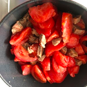 5、Add tomatoes and fry for 2-3 minutes