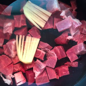 1、cold water into the diced beef