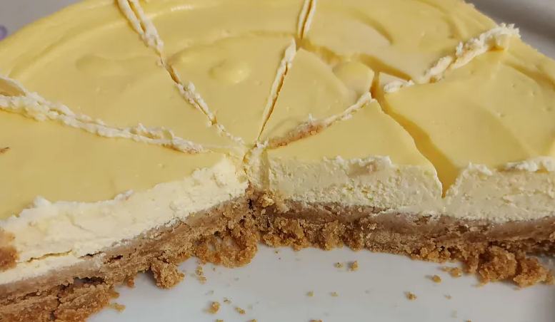 Now the last steps! After turning the oven on at 180 degrees Celsius, I poured the filling over the biscuit crust, smoothing out the top of it.
