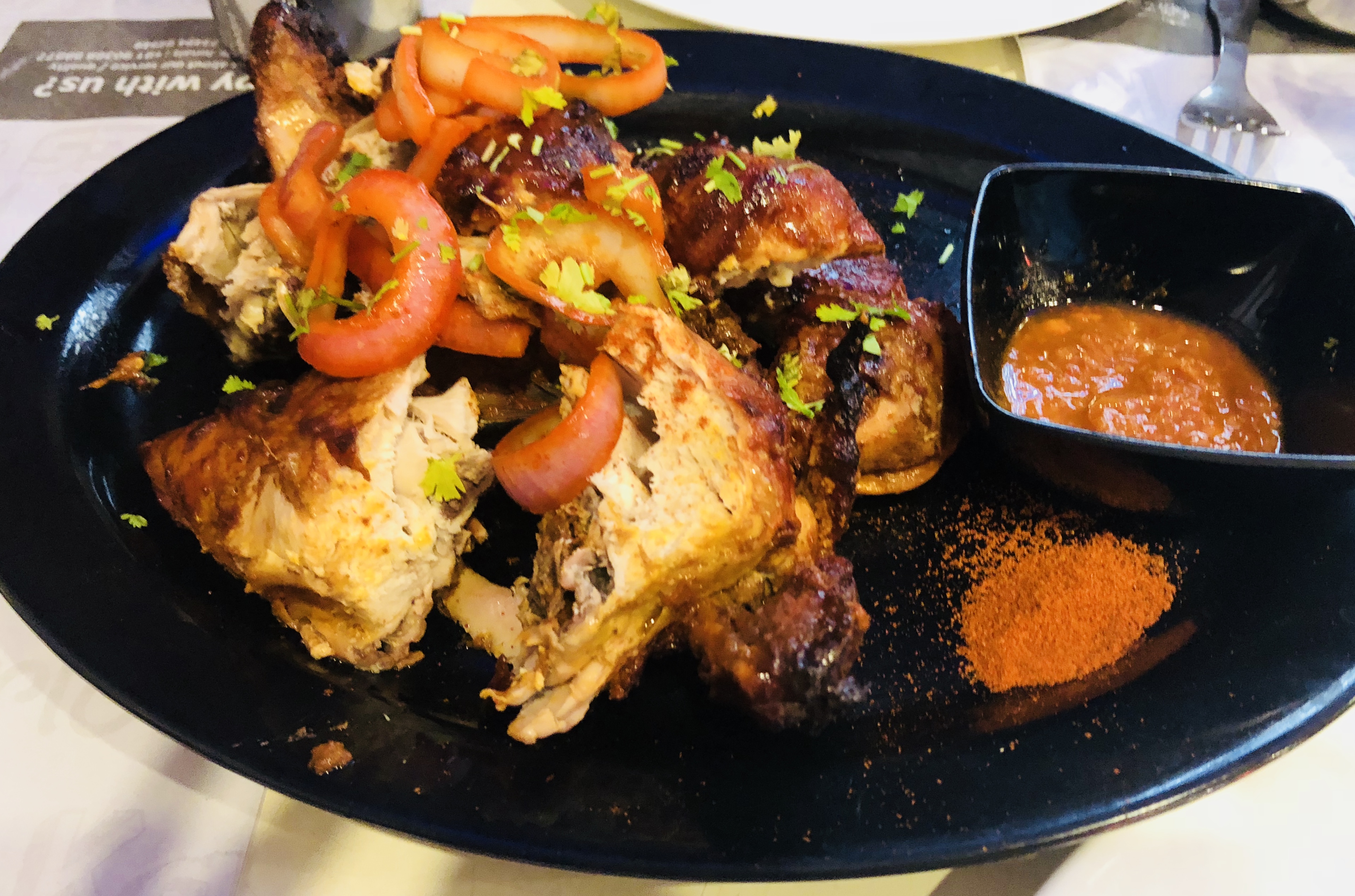 It’s spicy grilled chicken. I had it in a restaurant. Not sure about its recipe :)