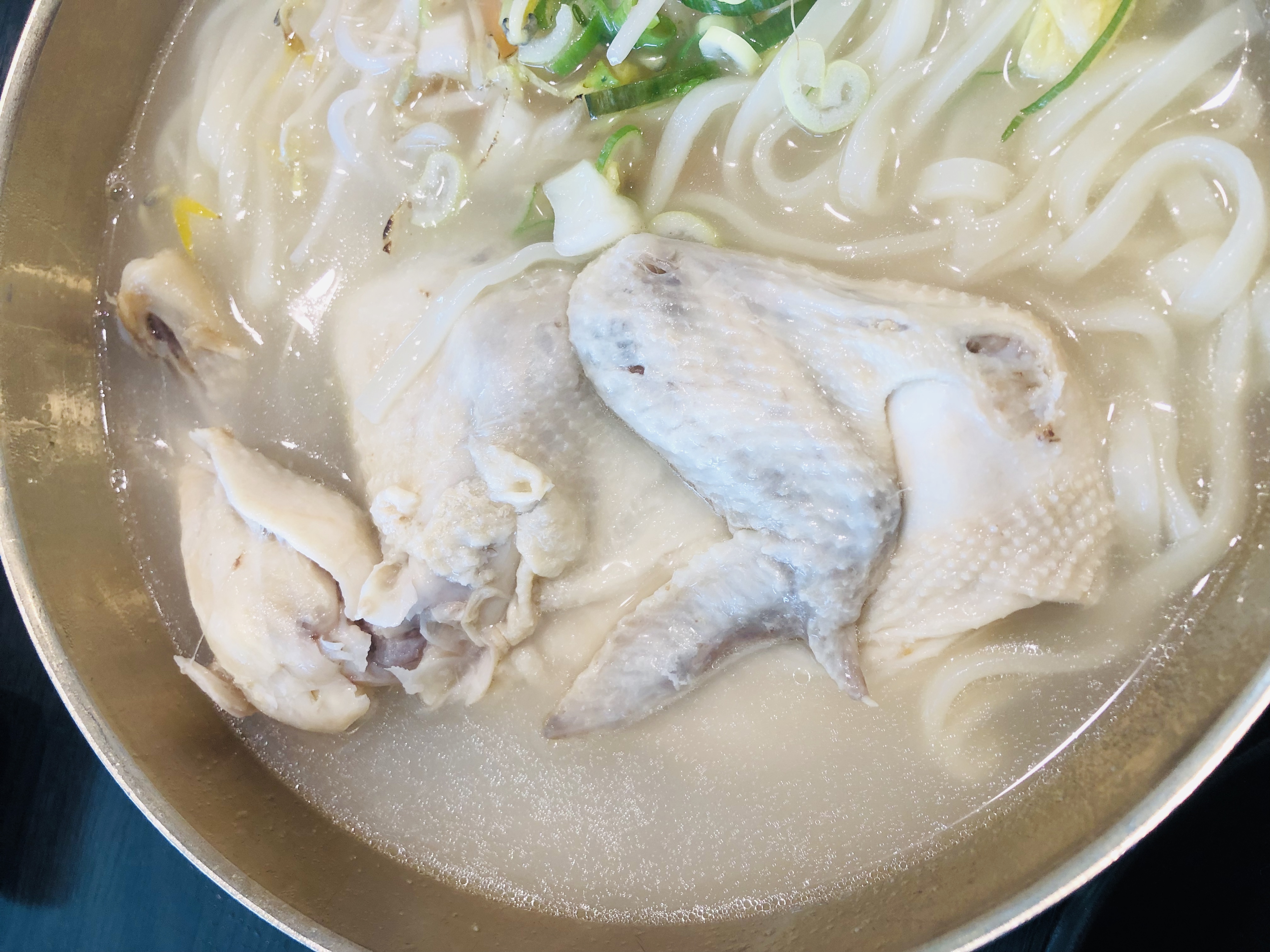 닭국수는 칼국수 면발에 닭 반마리가 들어 굉장히 푸짐하다