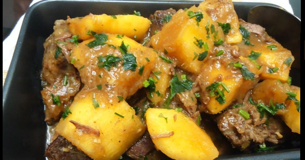 In the pressure cooker place the meat with all the ingredients, except cassava, parsley and chives
