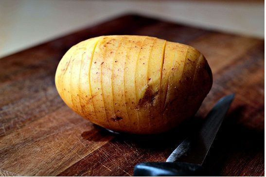 1.- Toma una papa grande y hazle cortes sin llenar al fondo
